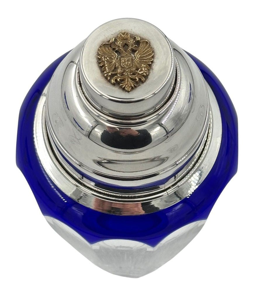 A Faberge crystal "Grand Duke" cocktail set with silver plated cocktail shaker and 4 glasses