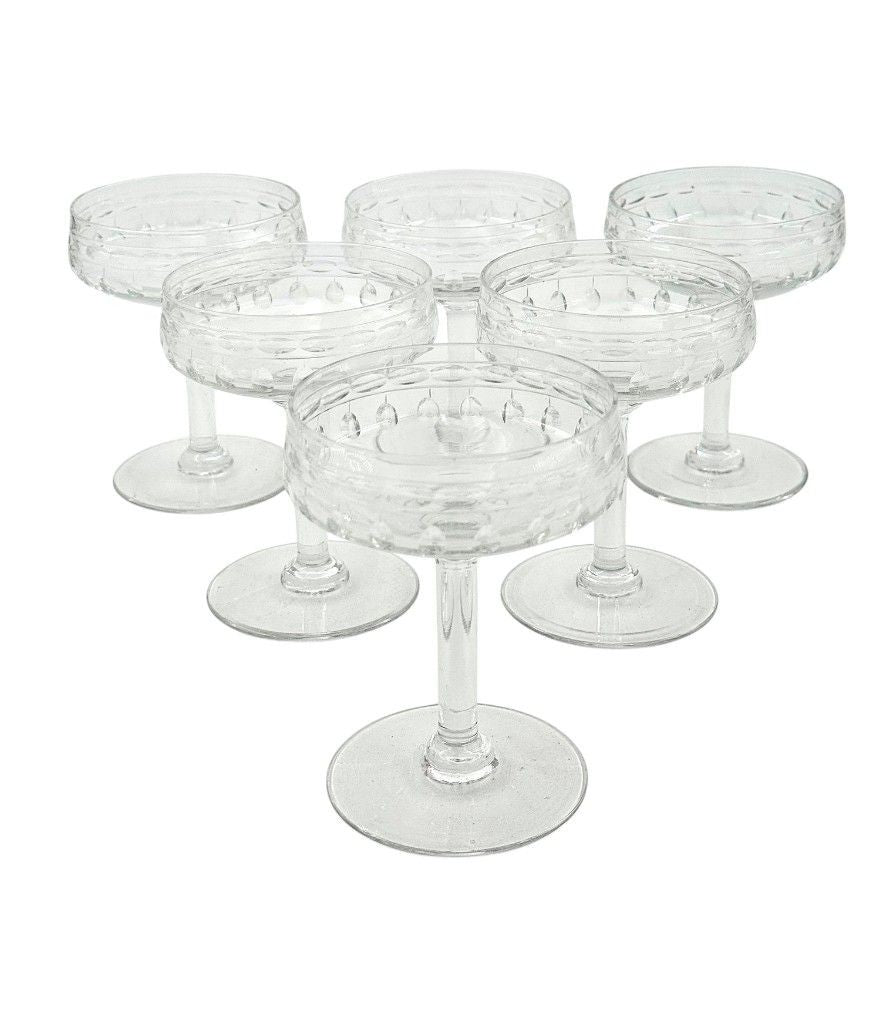 A set of six 1940s Val Saint Lambert "Cordoba" crystal cocktail / champagne coupes