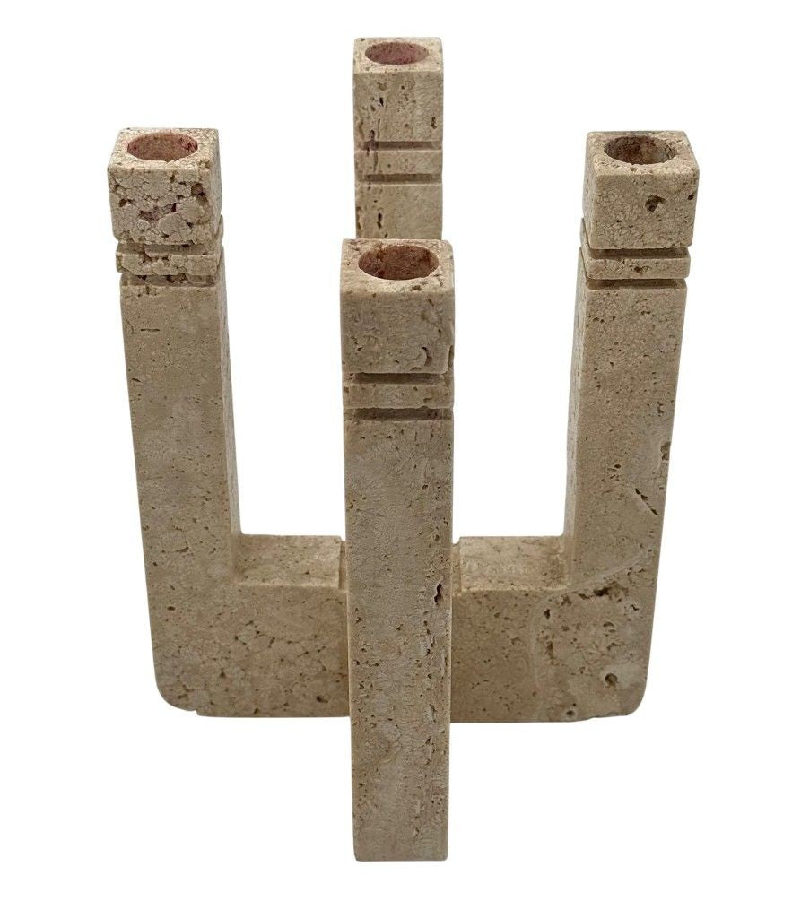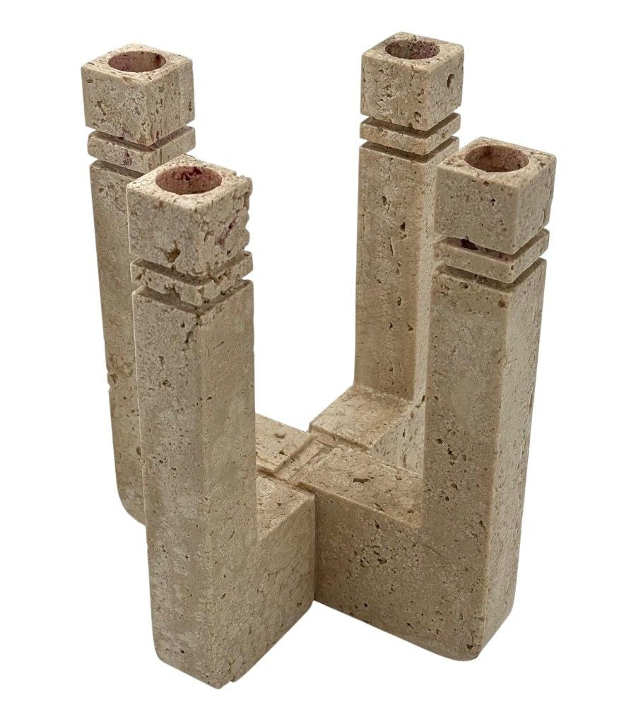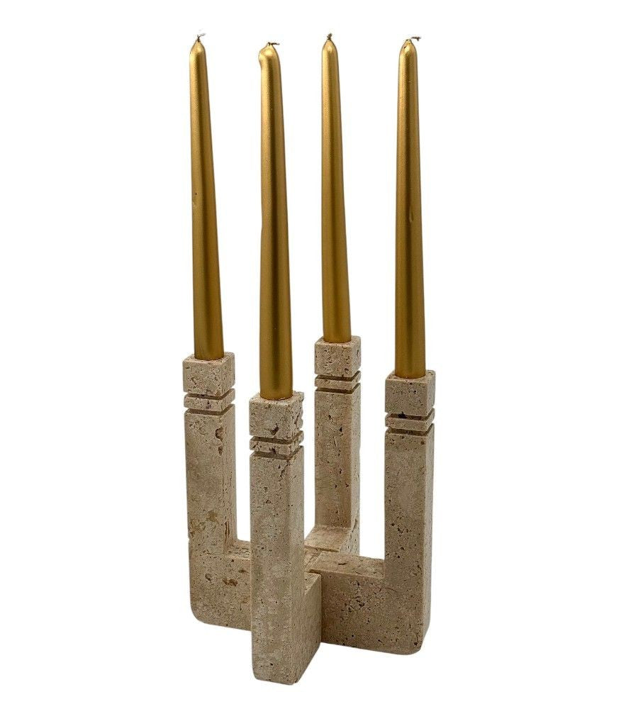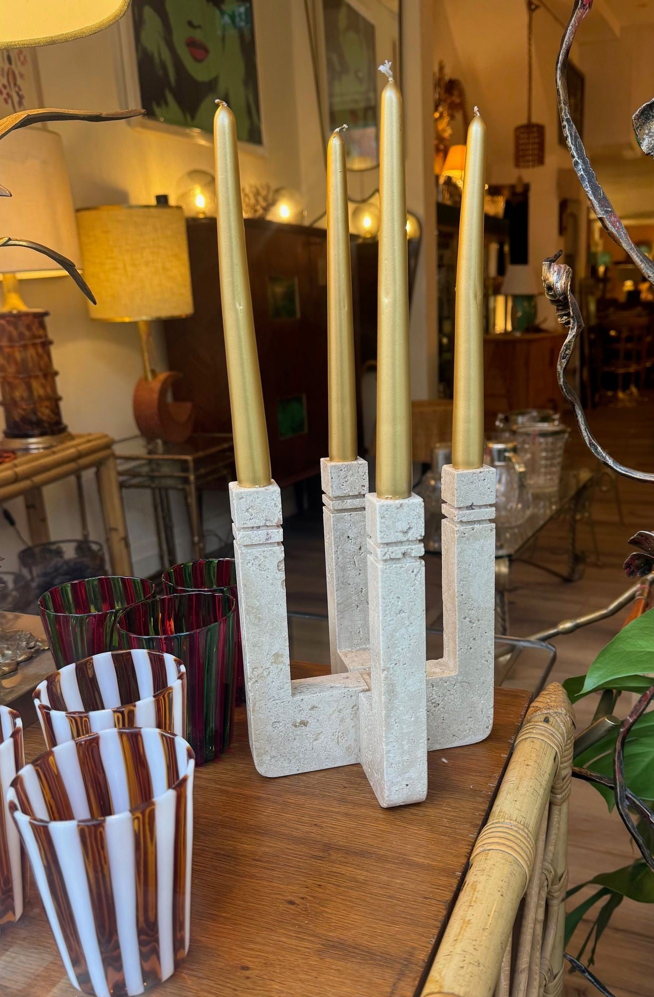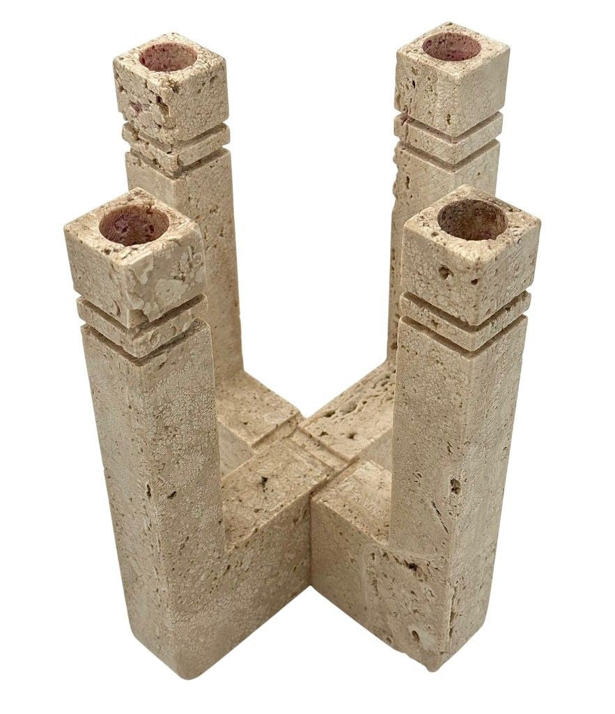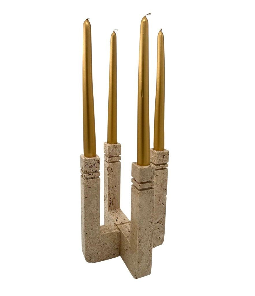 An Italian 1970s Travertine candle holder by Fratelli Mannelli with four candle stems.