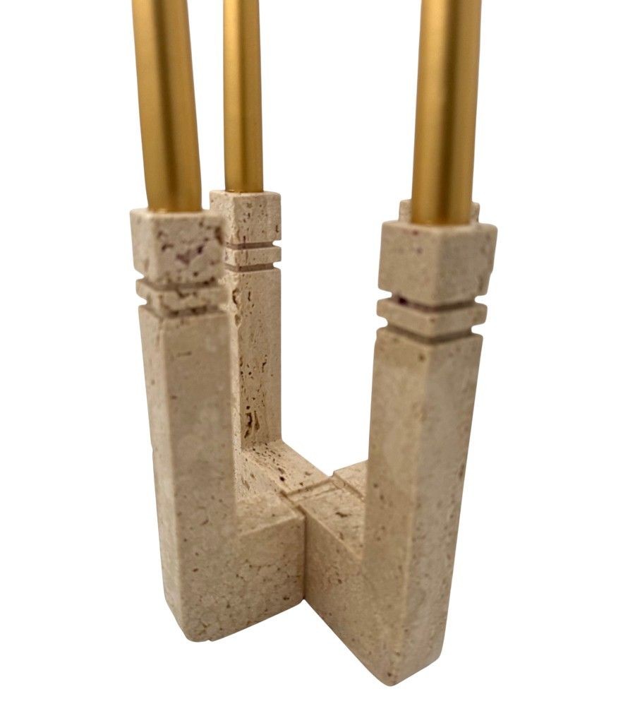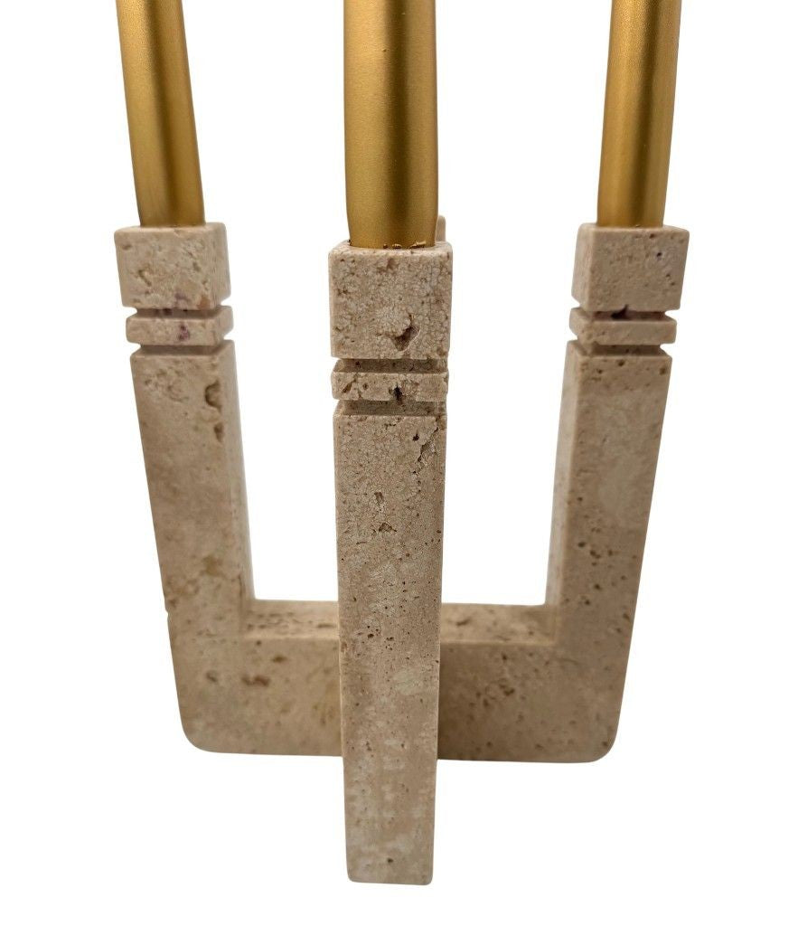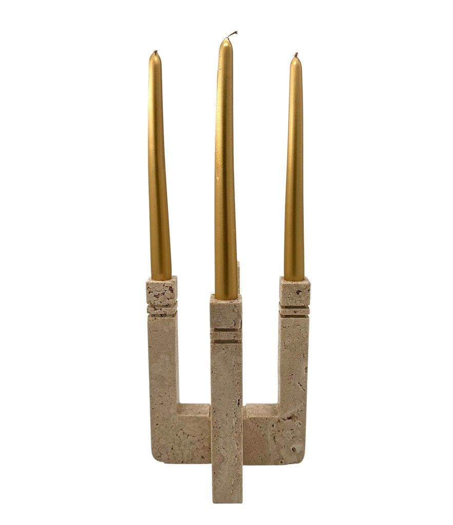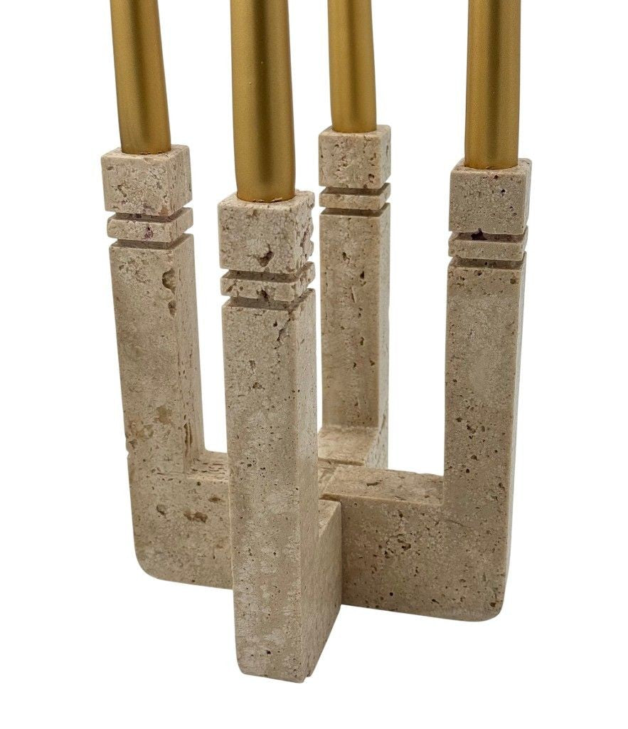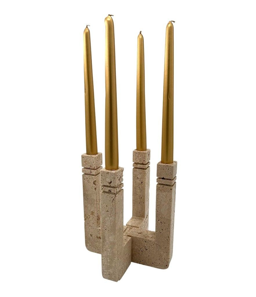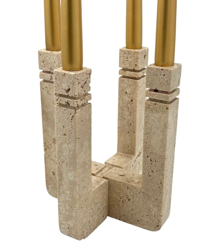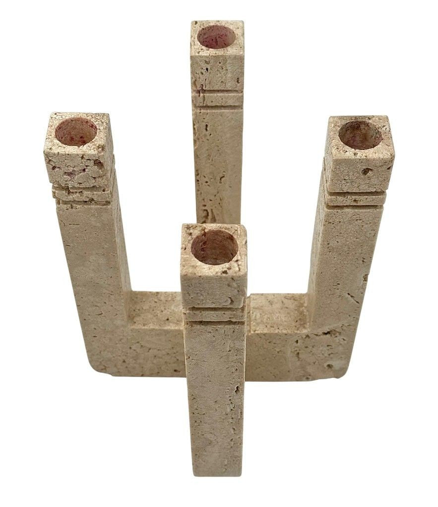 An Italian 1970s Travertine candle holder by Fratelli Mannelli with four candle stems.