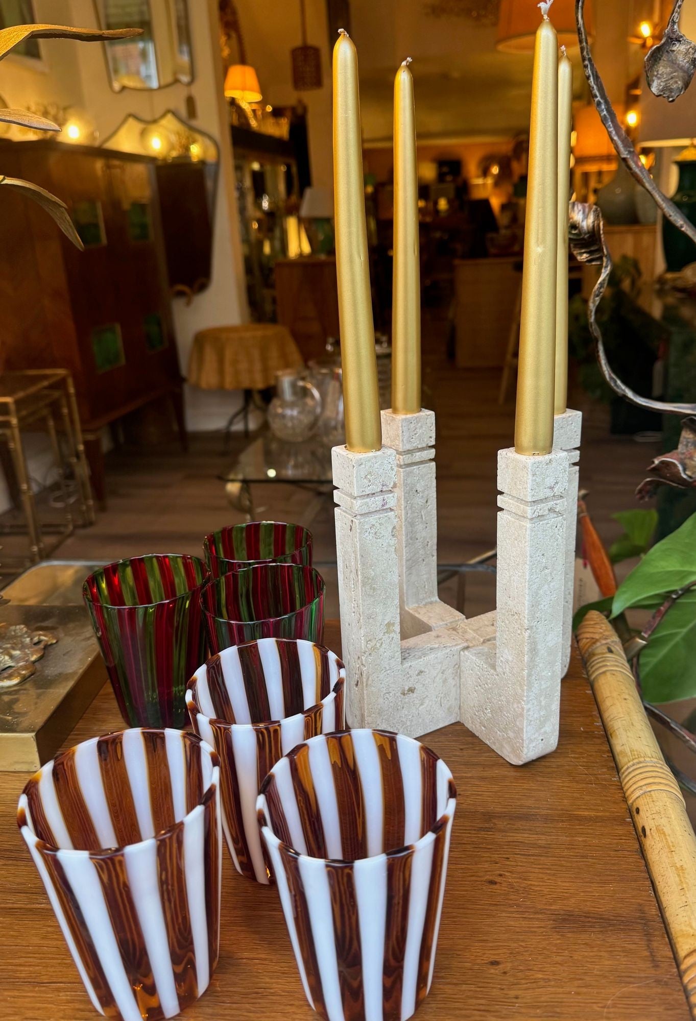 An Italian 1970s Travertine candle holder by Fratelli Mannelli