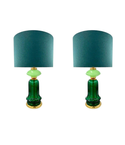A pair of large large dark and light green Murano opaline lamps by Cenedese