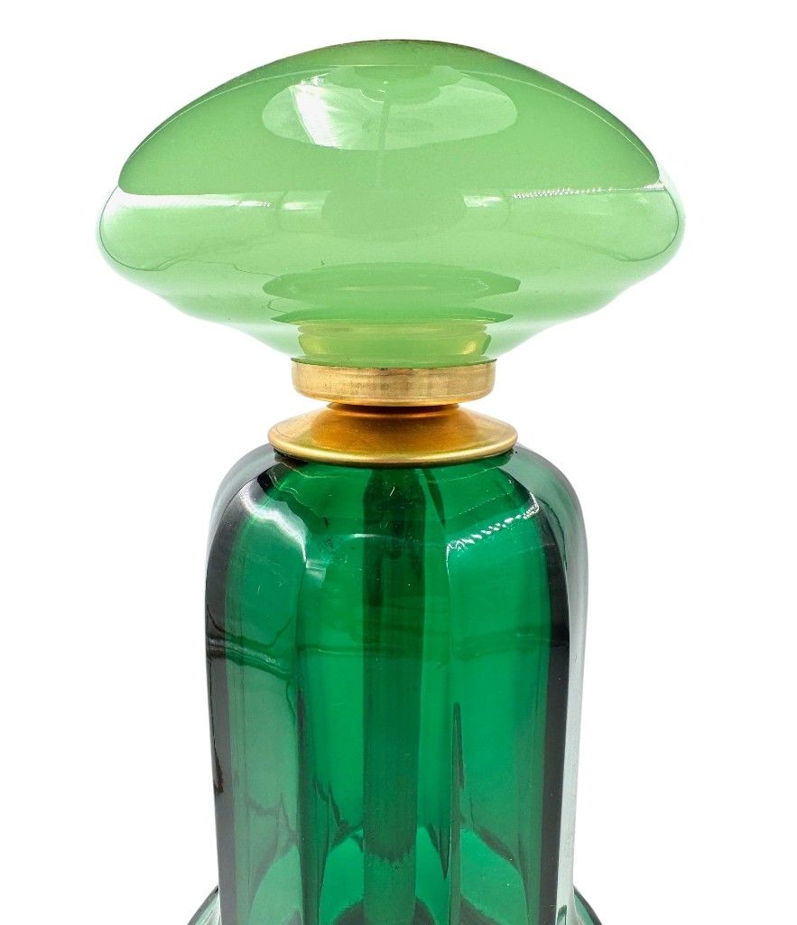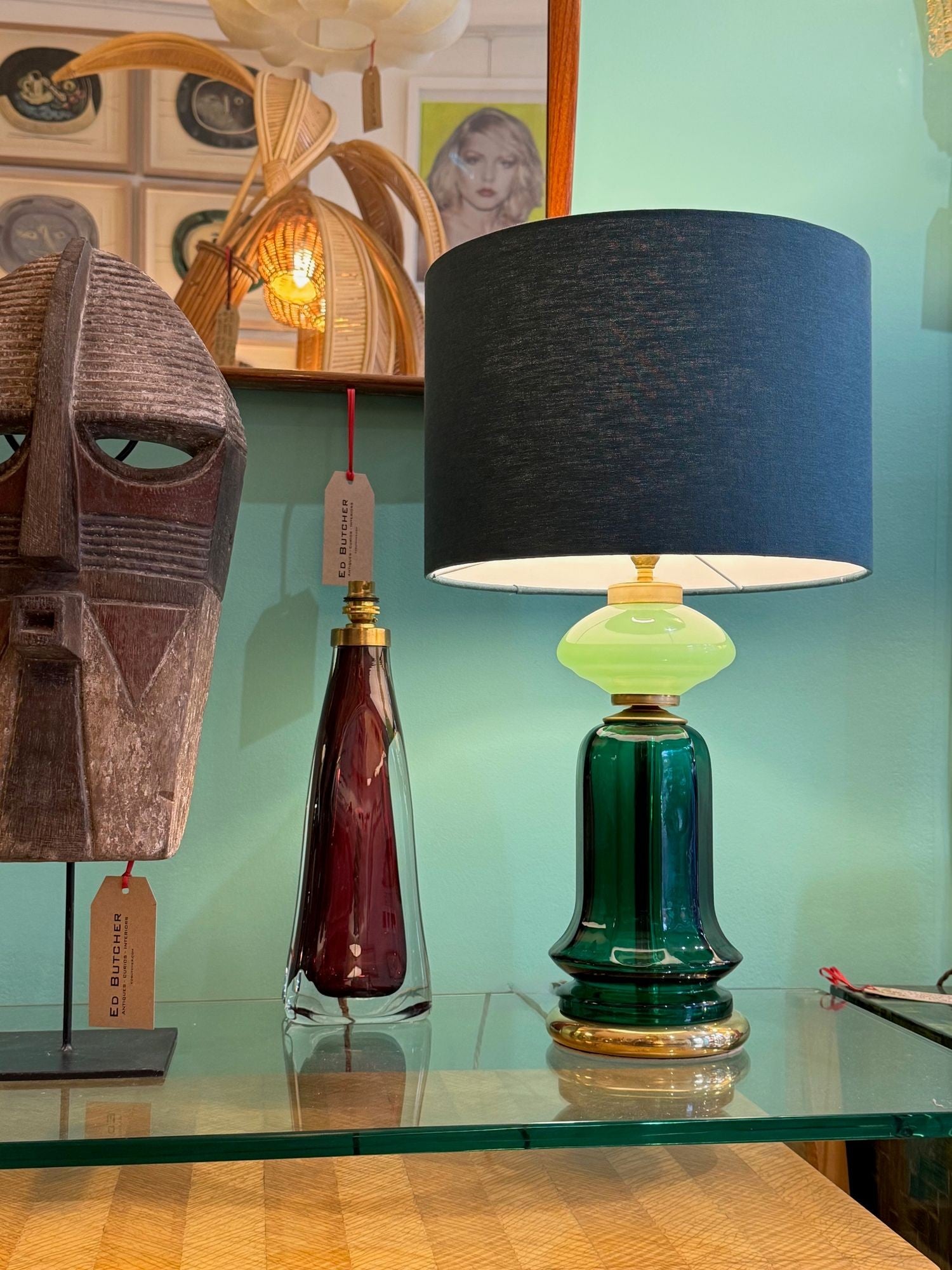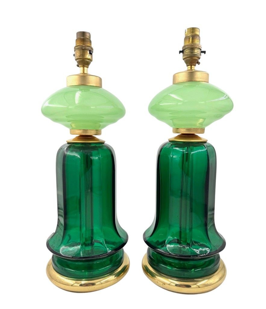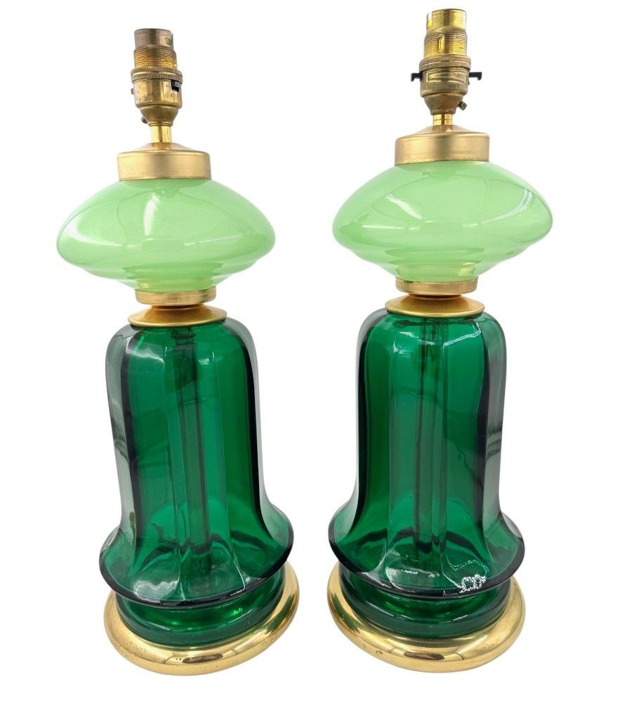 A pair of large large dark and light green Murano opaline lamps by Cenedese