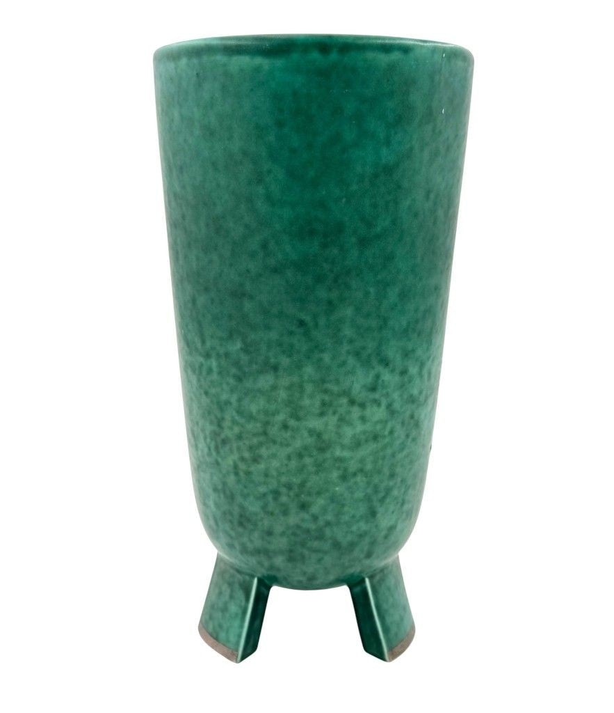 An Art Deco 1930s three legged "Argenta" stoneware vase by Wilhelm Kage for Gustavsberg, Sweden