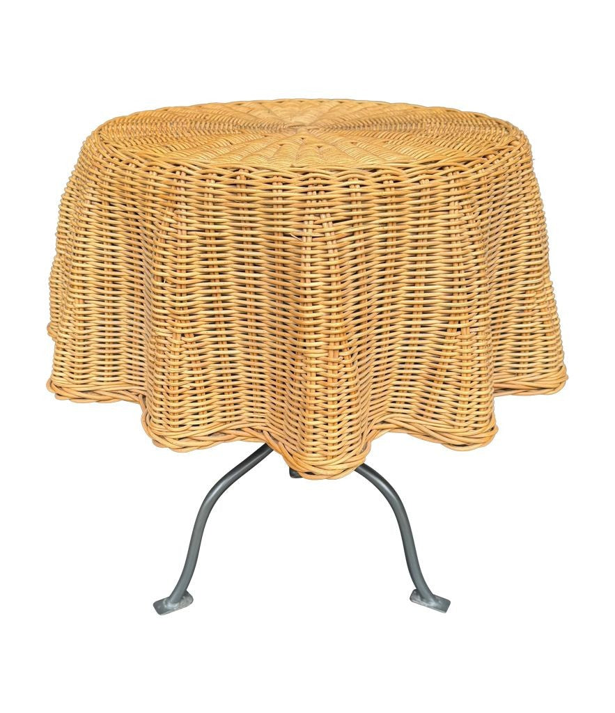 An Italian 1970s woven rattan "draped" side table with cost iron legs