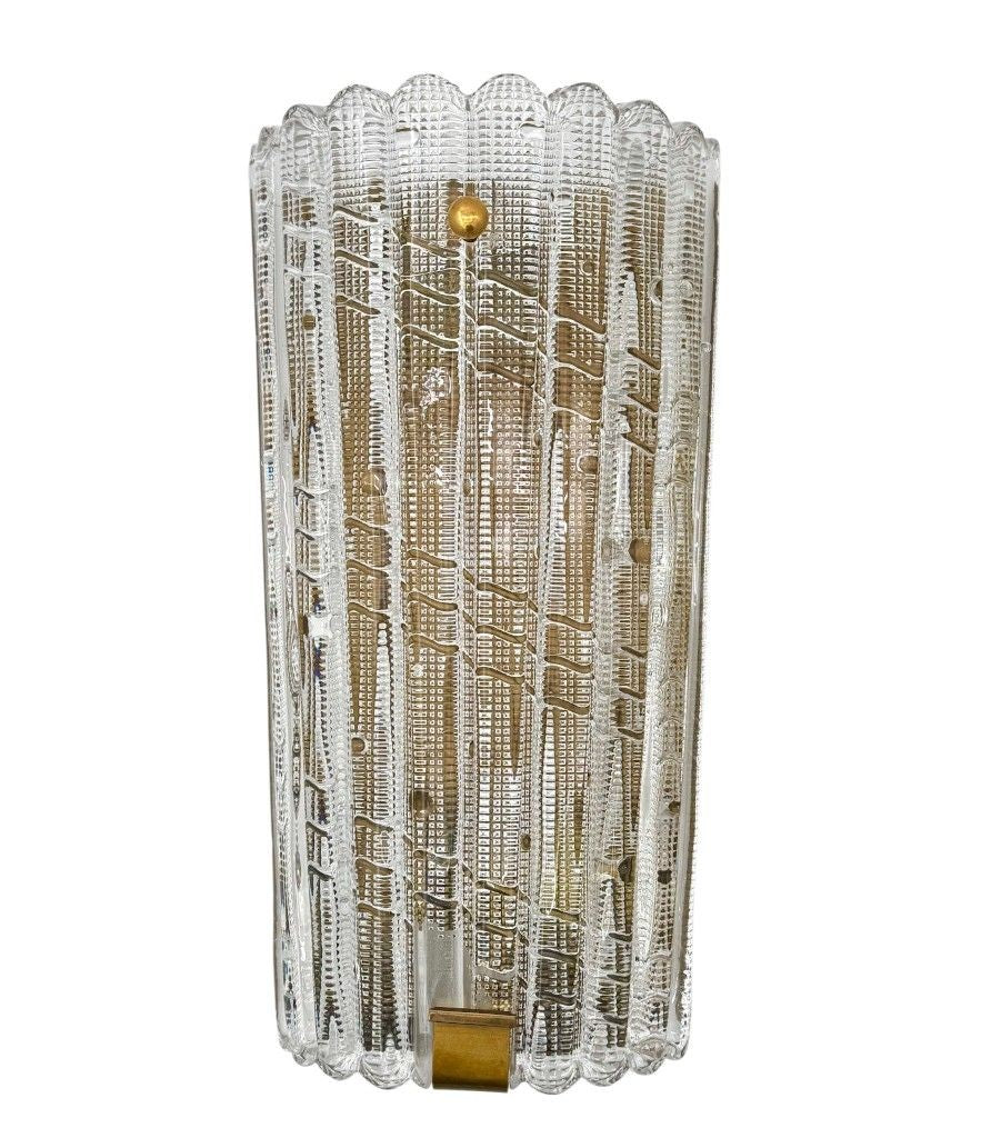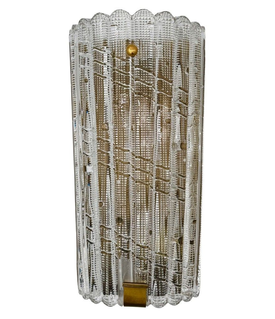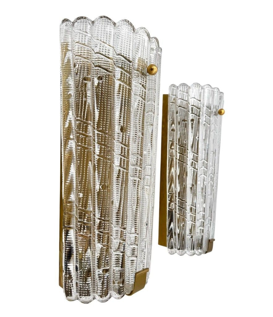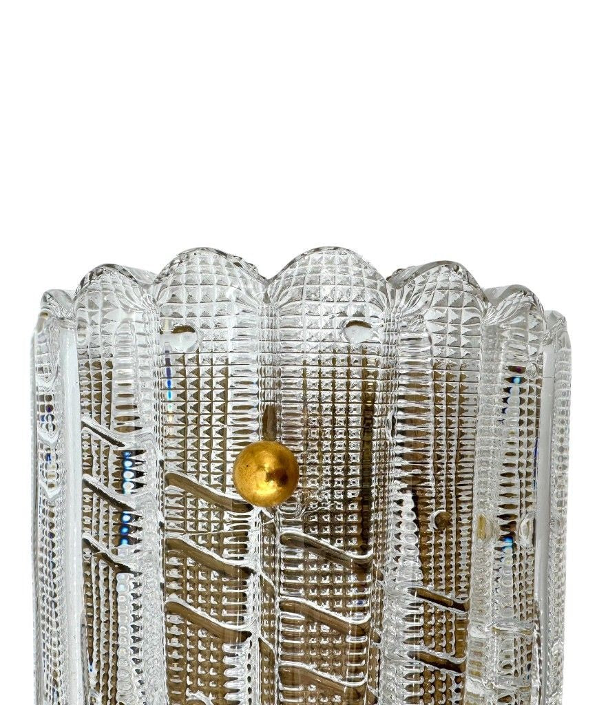 A large pair of Swedish 1960s Orrefors glass and brass wall sconces by Carl Fagerlund