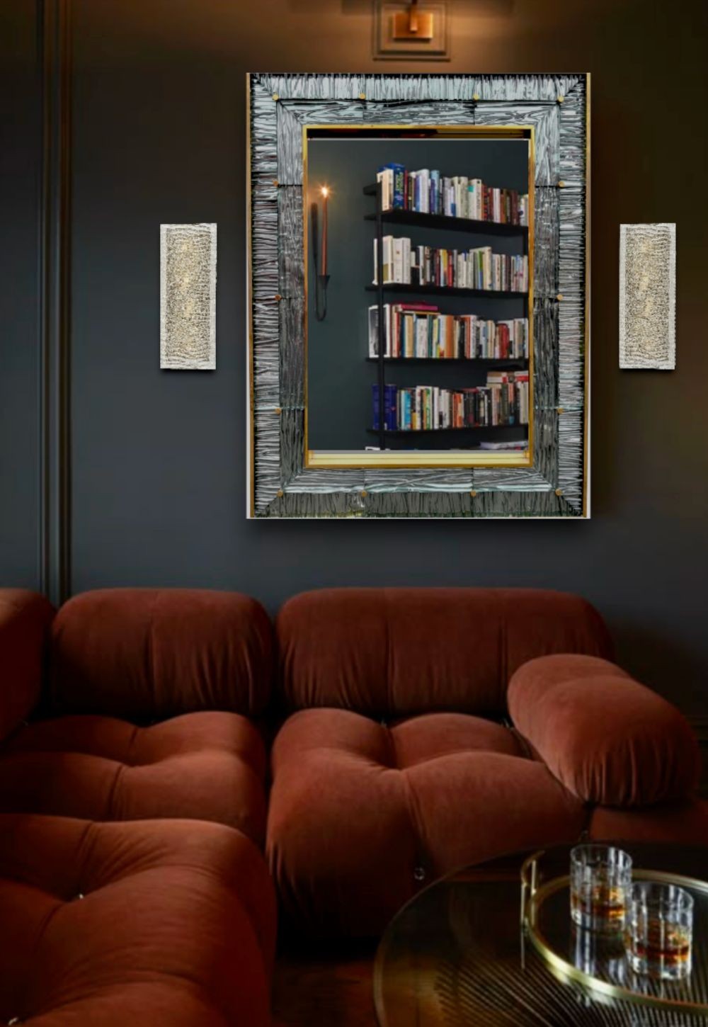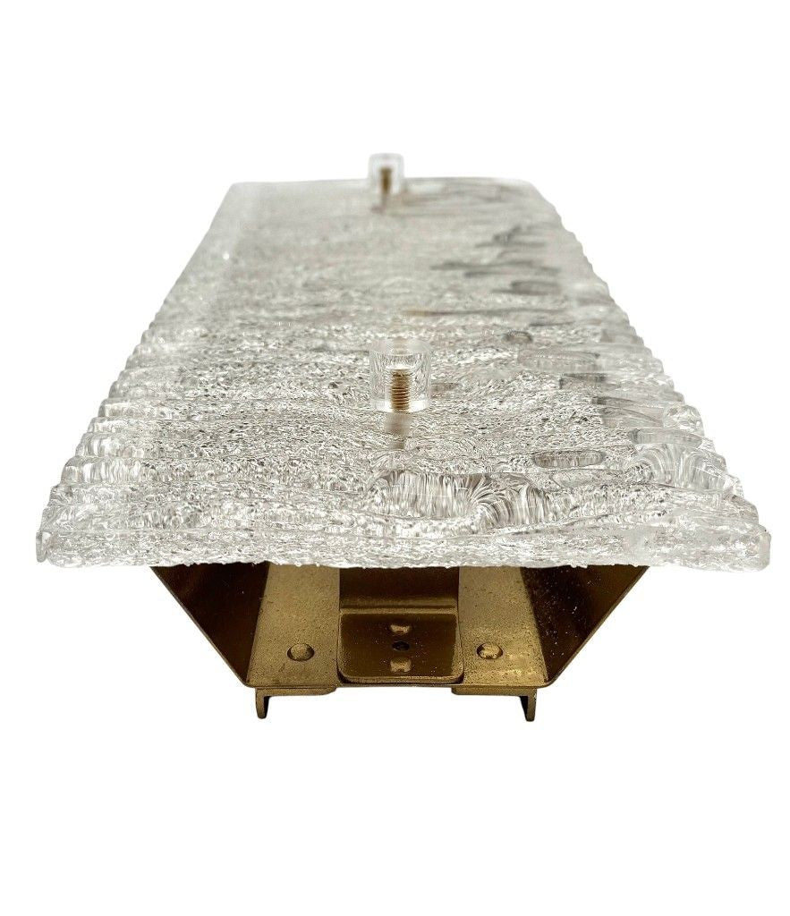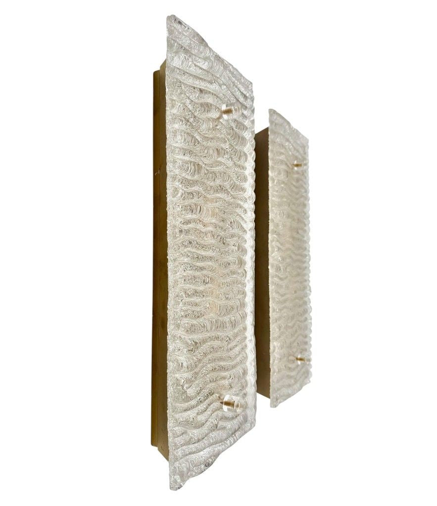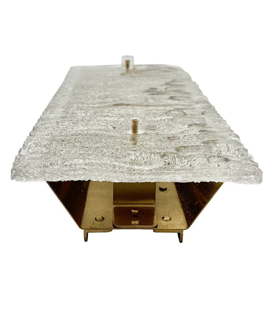 A pair of large 1970s "Ice Glass" wall lights by Leutchens, each with two light fittings, mounted on brass back plate. Rewire with new fittings and PAT tested
