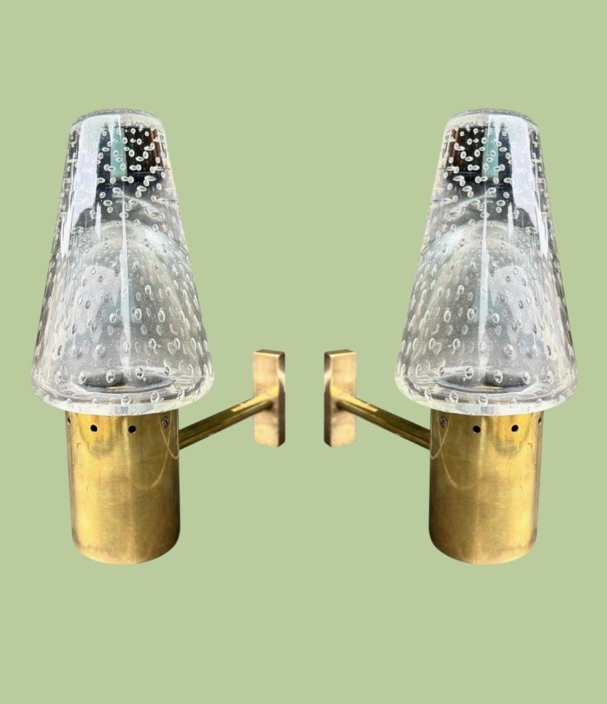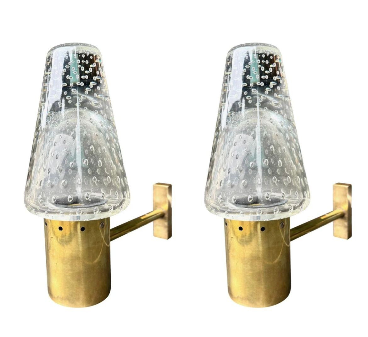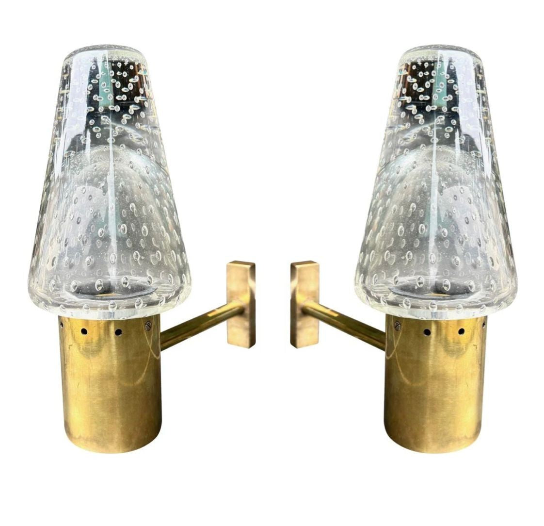 A rare pair of 1950s Murano glass and brass wall lights by Gino Sarfatti and Archimede Seguso