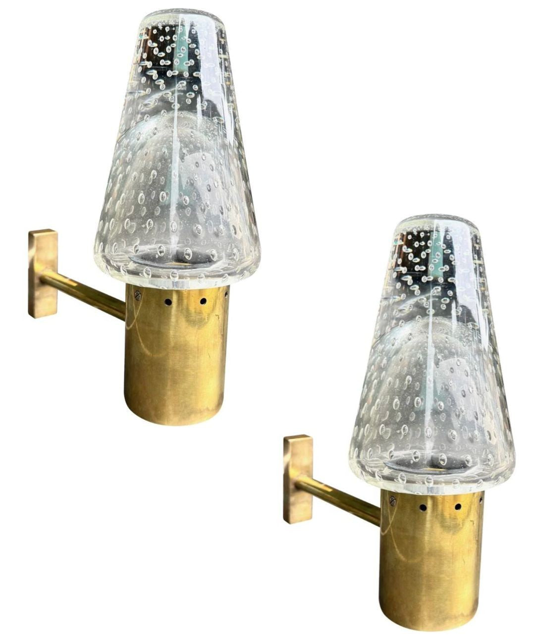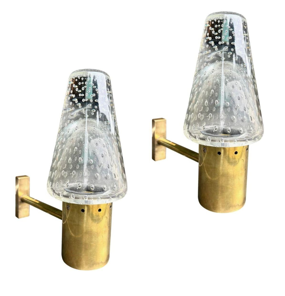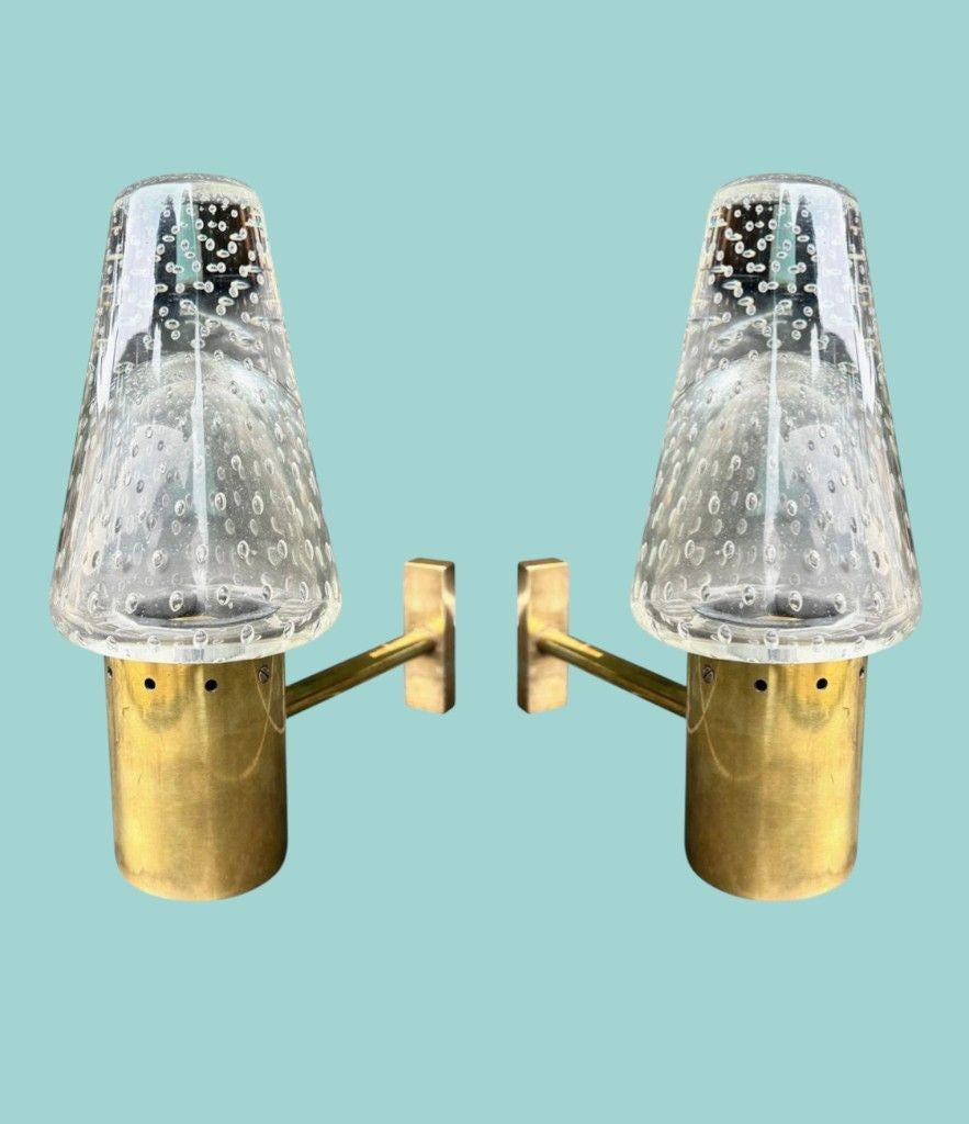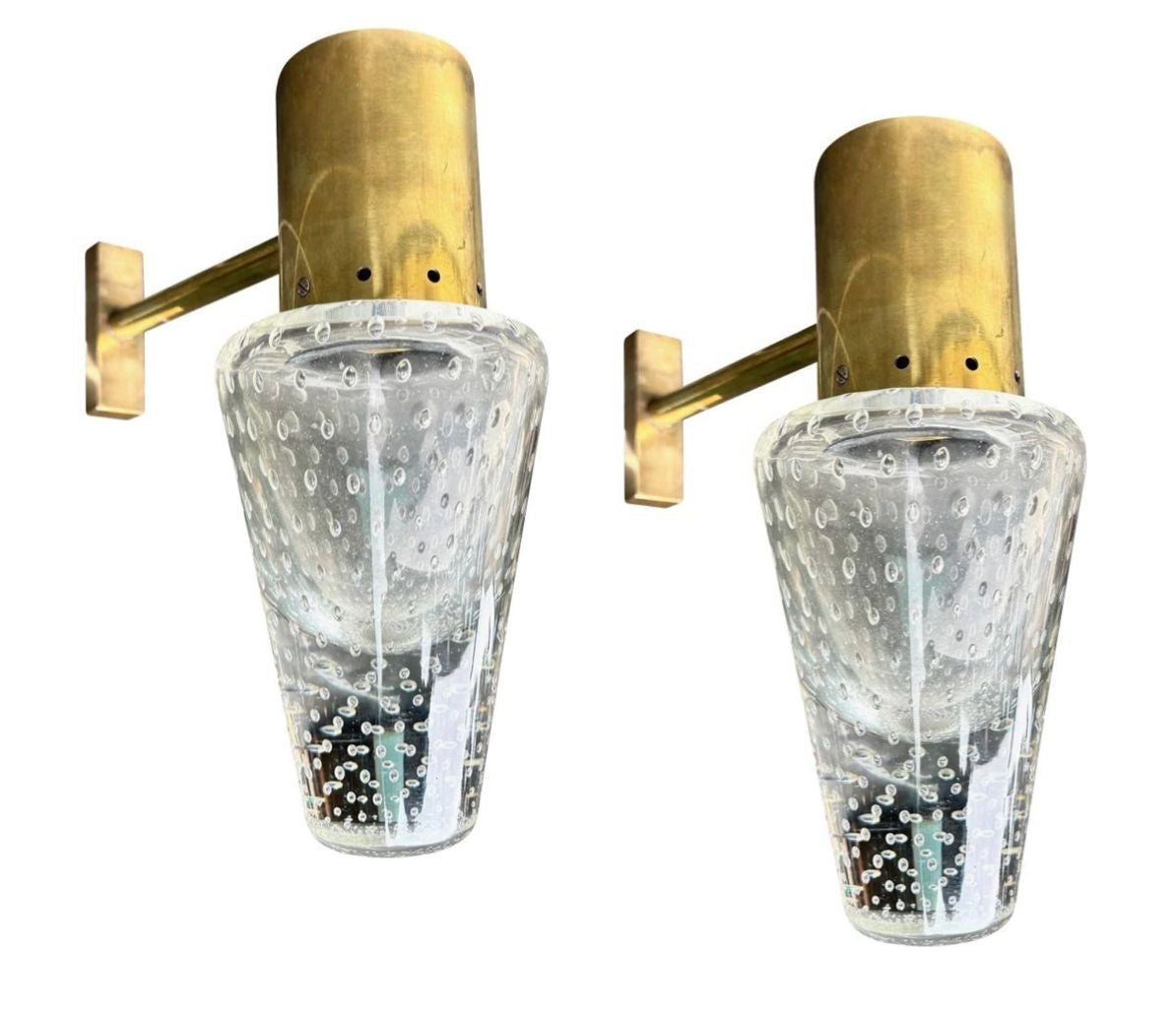 A rare pair of 1950s Murano glass and brass wall lights by Gino Sarfatti and Archimede Seguso