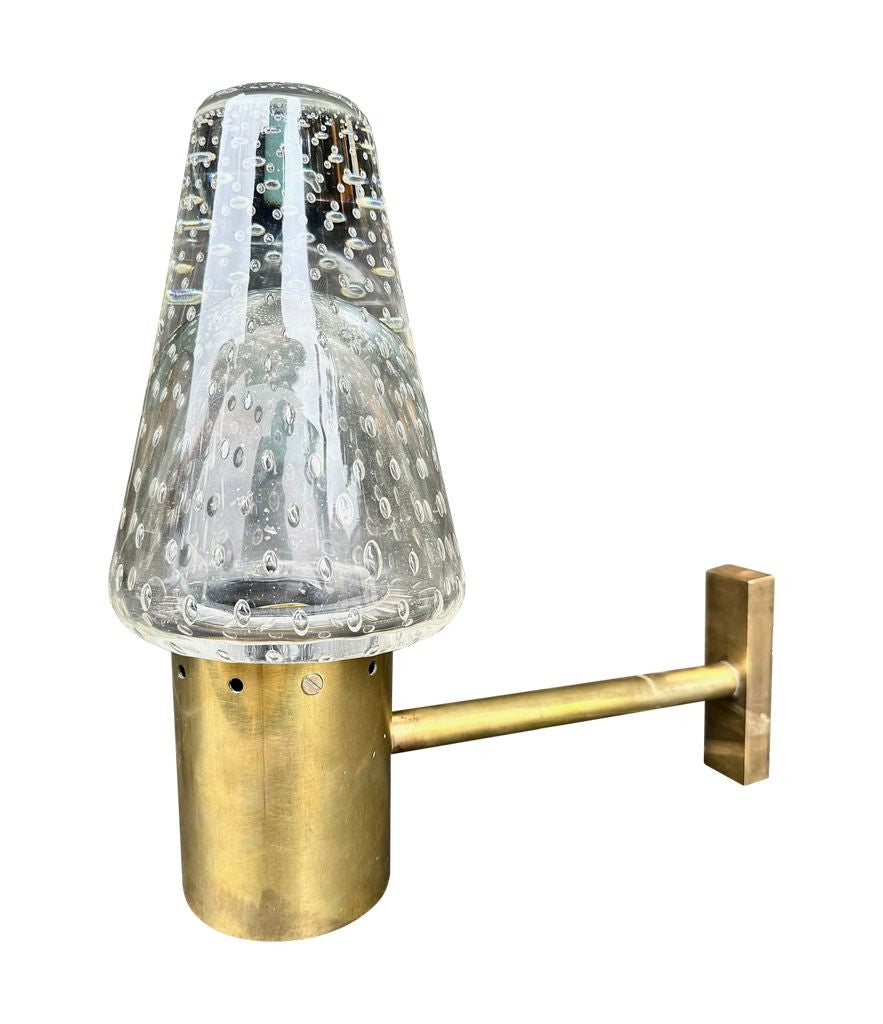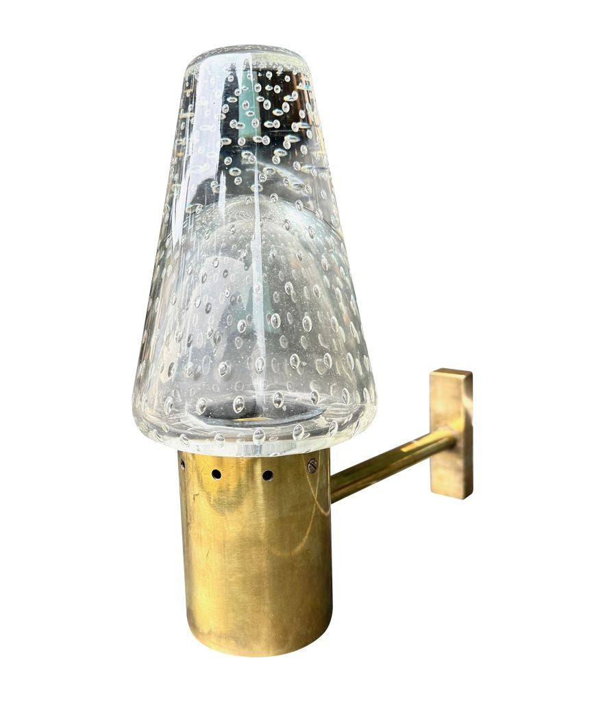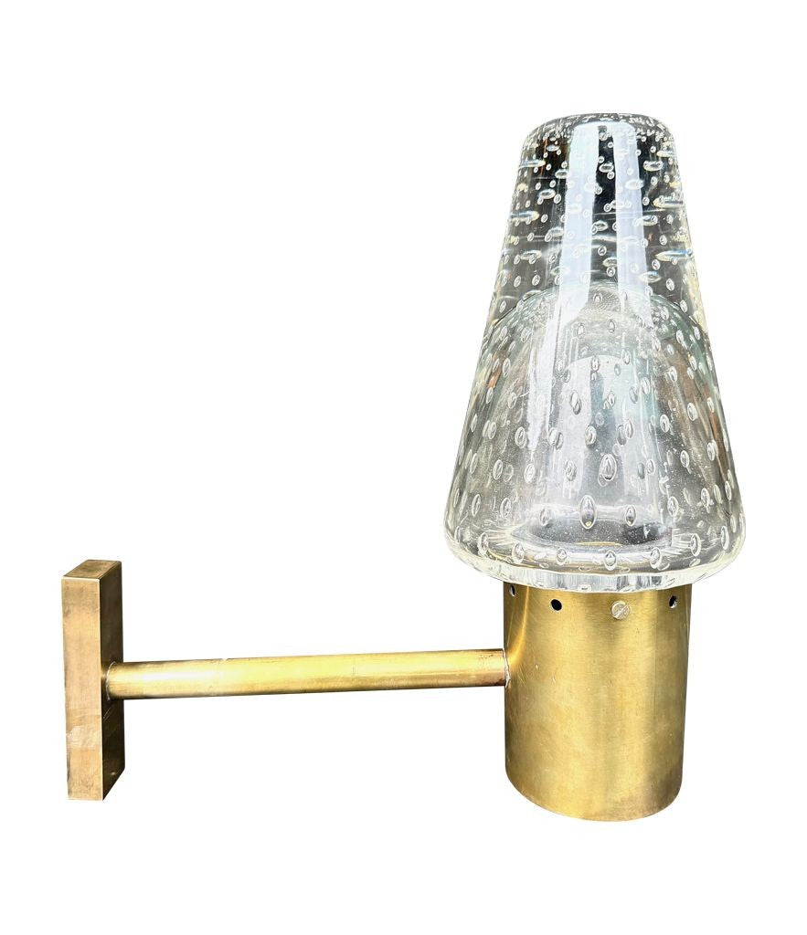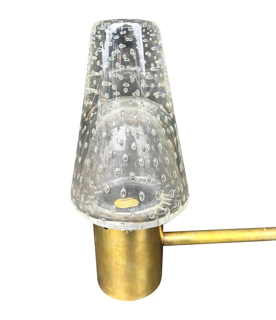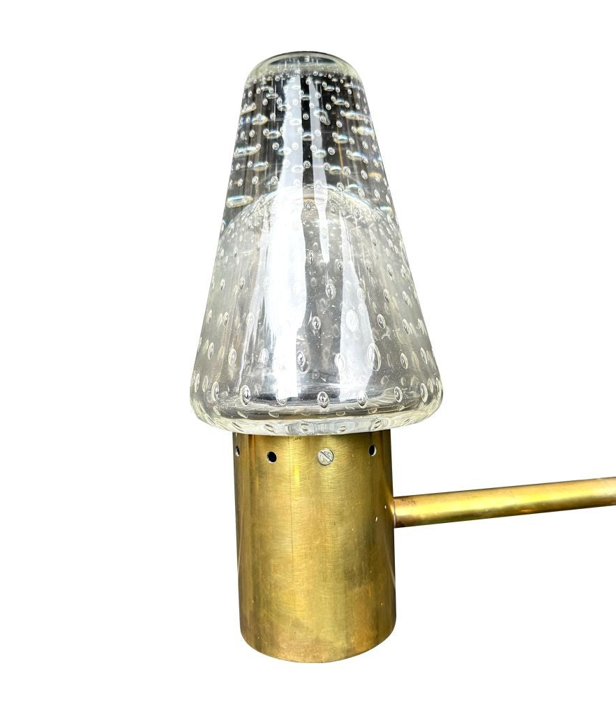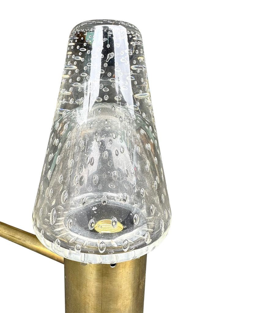 A rare 1950s Murano glass and brass wall light designed by Gino Sarfatti and Archimede Seguso, for lighting company Arteluce.