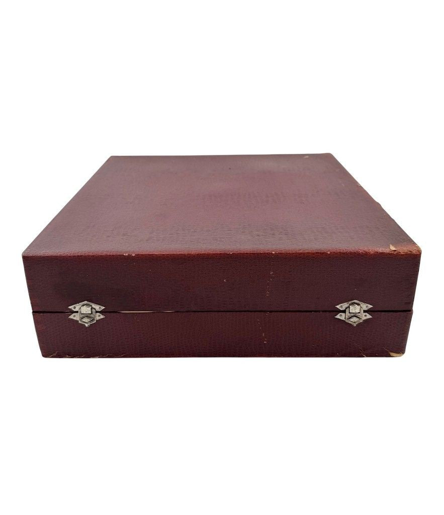 A 1930s Silver plated Art deco cocktail set with silver plated cocktail shaker and eight silver plated shot glasses, in a silk lined presentation case with faux crocodile skin outer and orignal retailers name stamped on the inner lid, in gold Art Deco font "P.Pillon, Beziers"