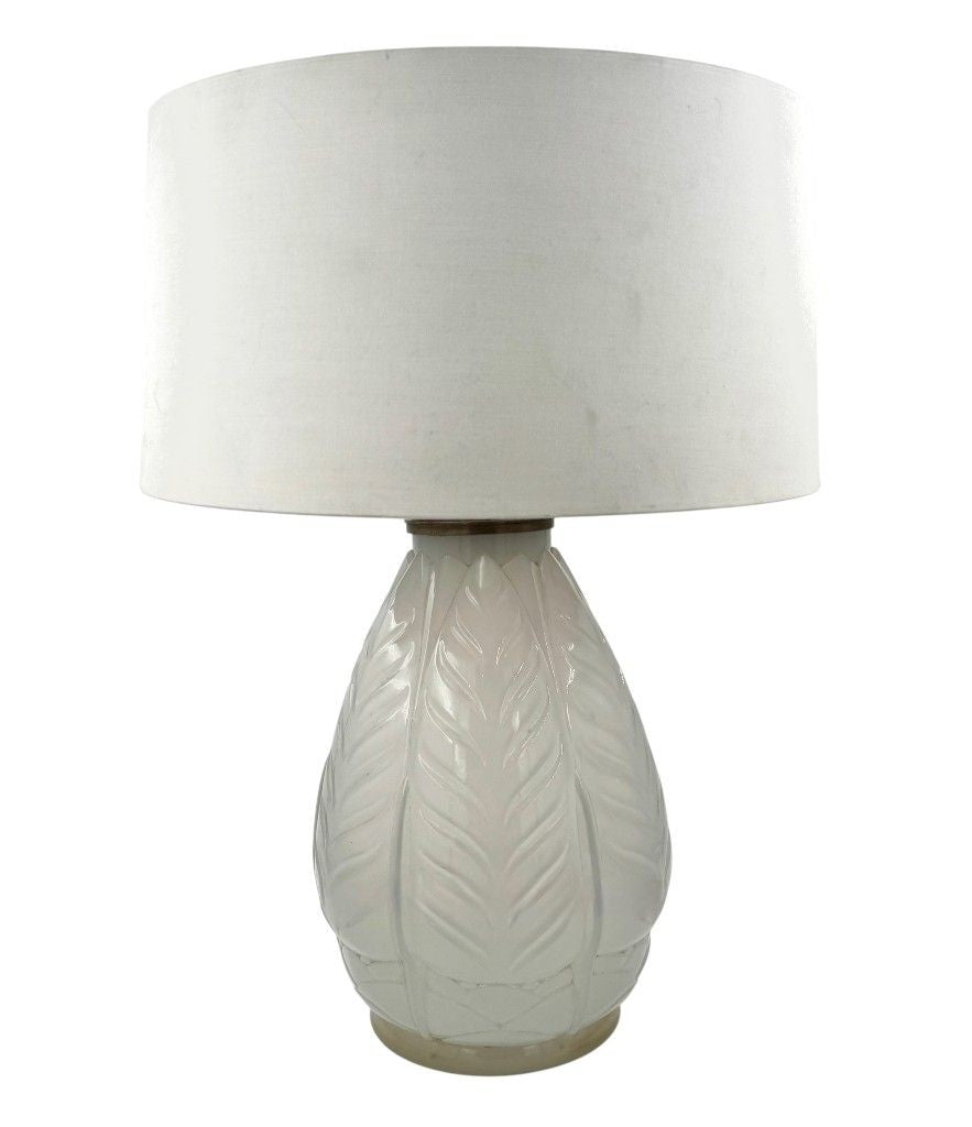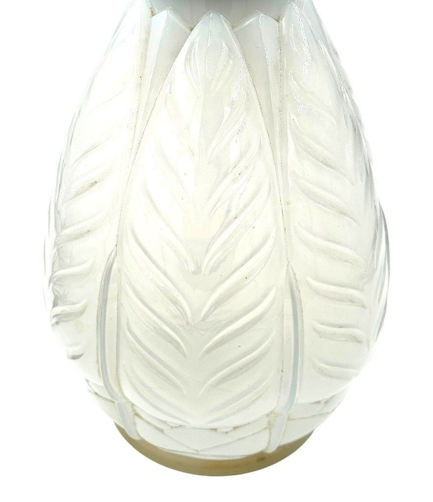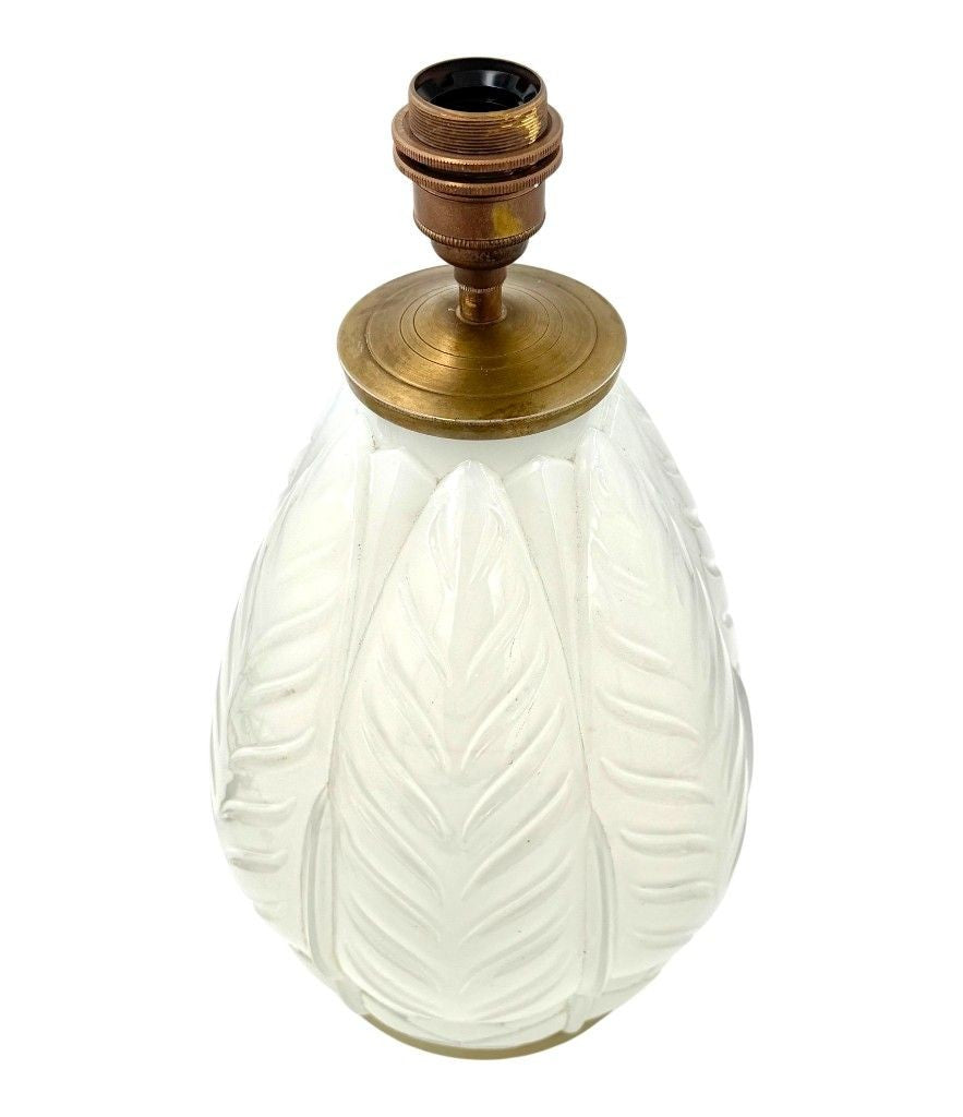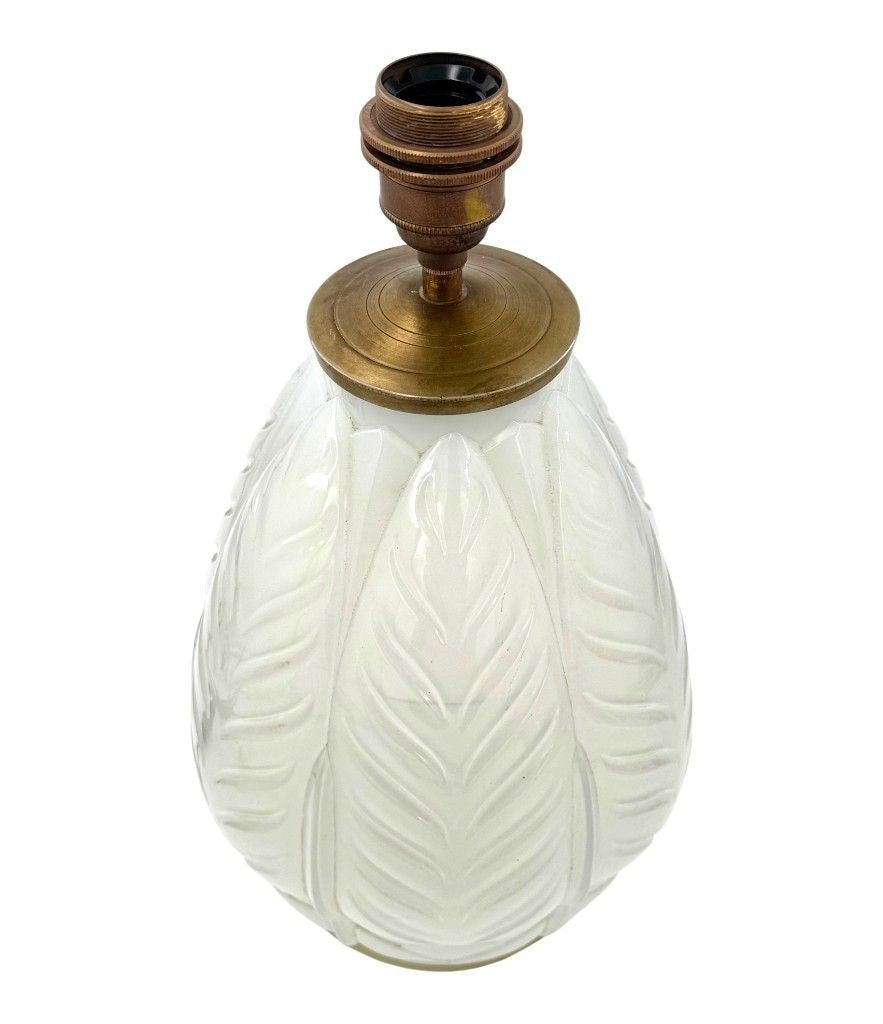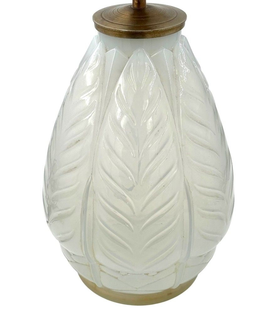 A French 1930s Cristallerie Lorraine Alsace glass opaline lamp with leaf desgin