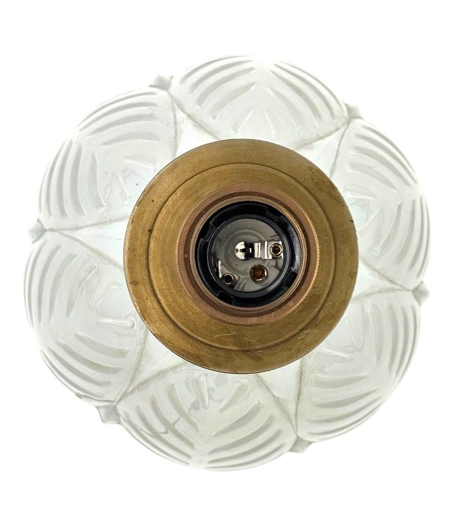 A French 1930s Cristallerie Lorraine Alsace pressed glass opaline lamp with leaf design and stamped on the base "CLA Made in France". Re wired with new bronze fittings, antique gold cord flex and PAT tested.