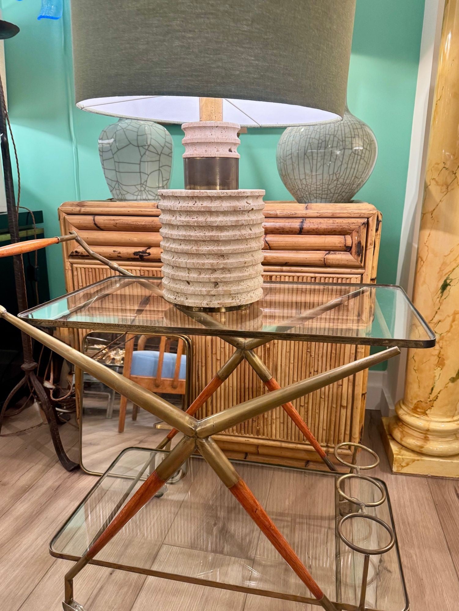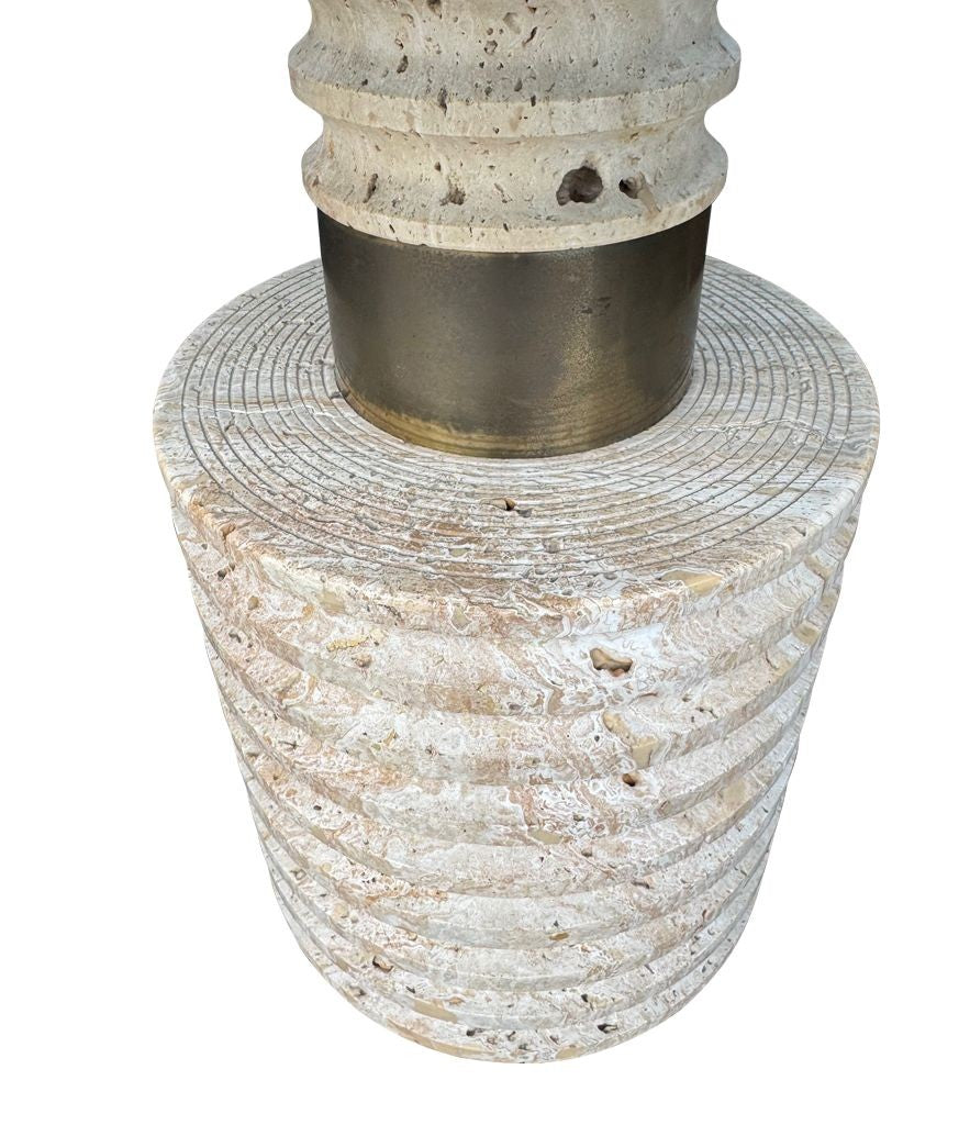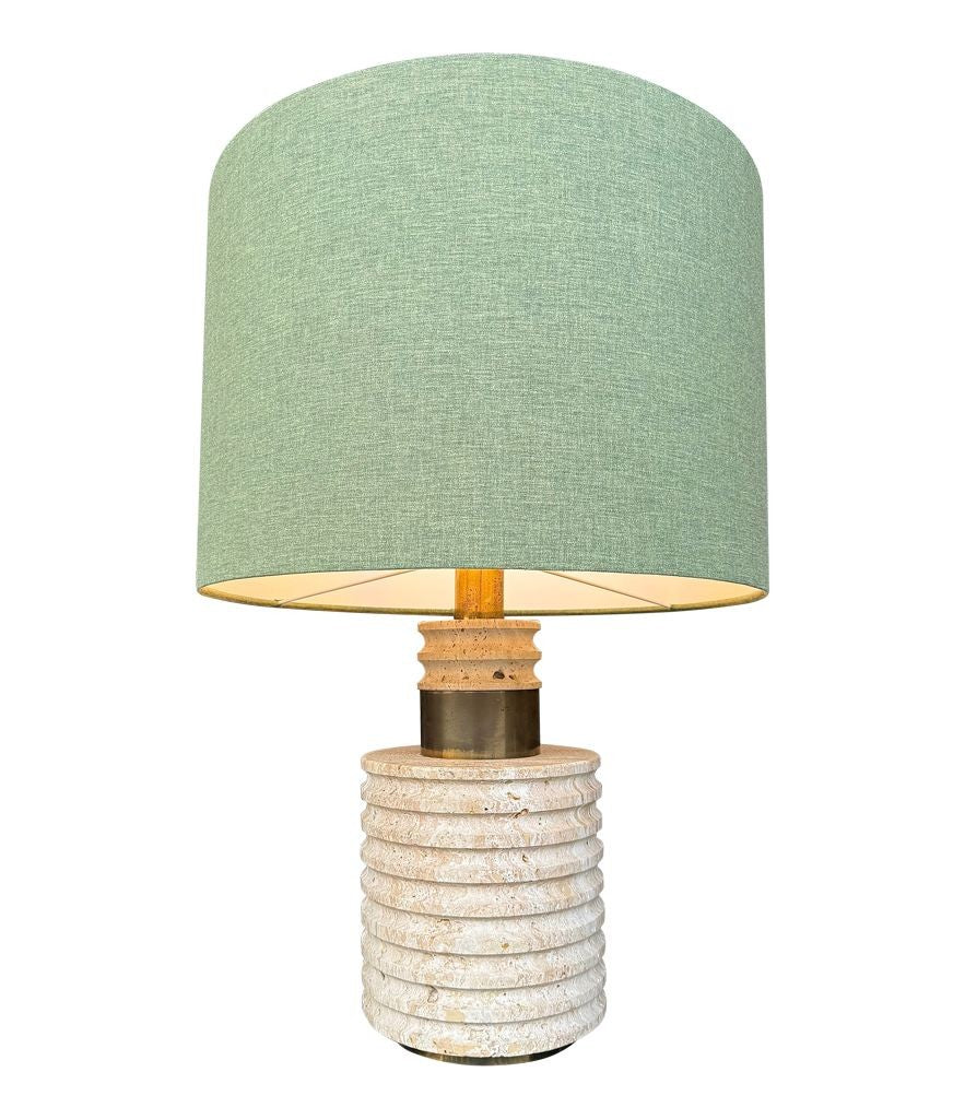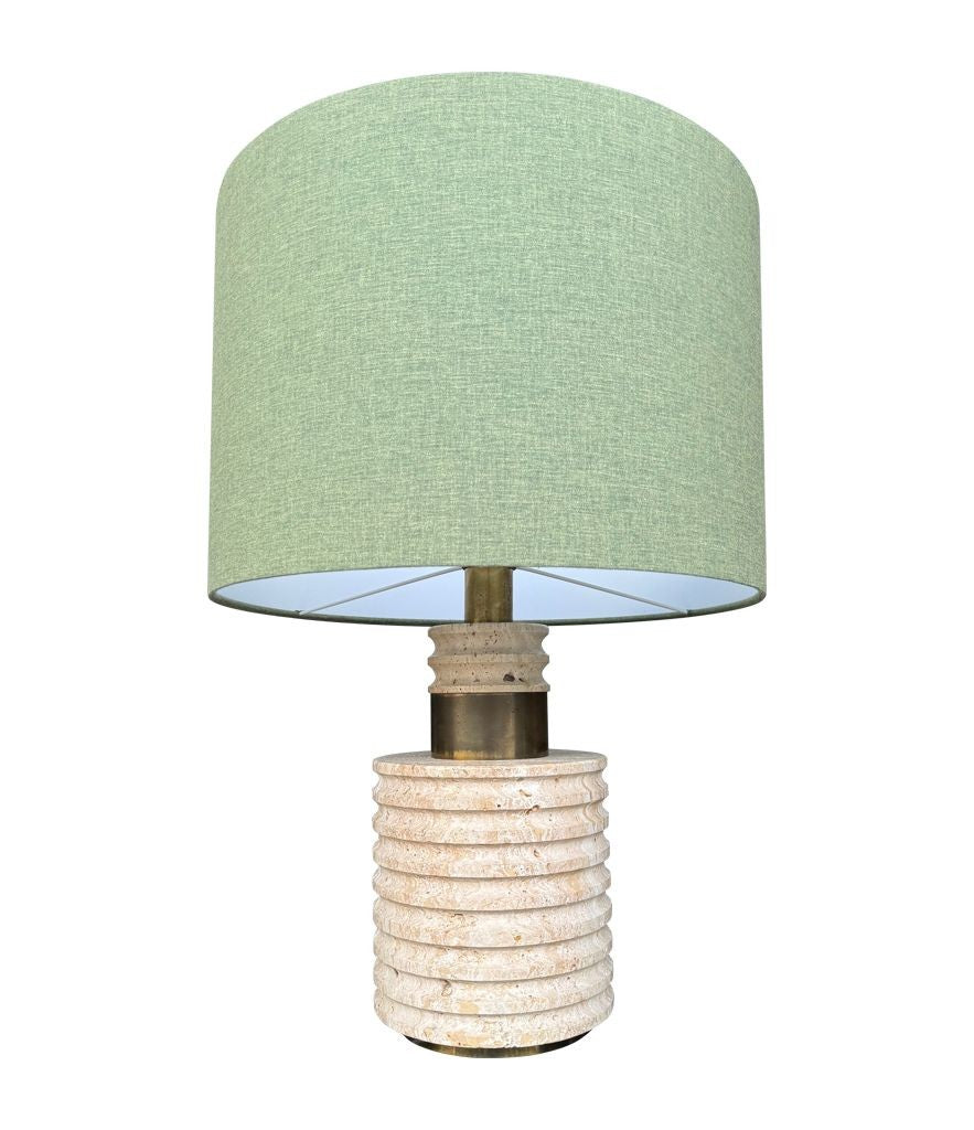 A large Fratelli Manneli ribbed Italian 1970s travertine lamp with brass detail