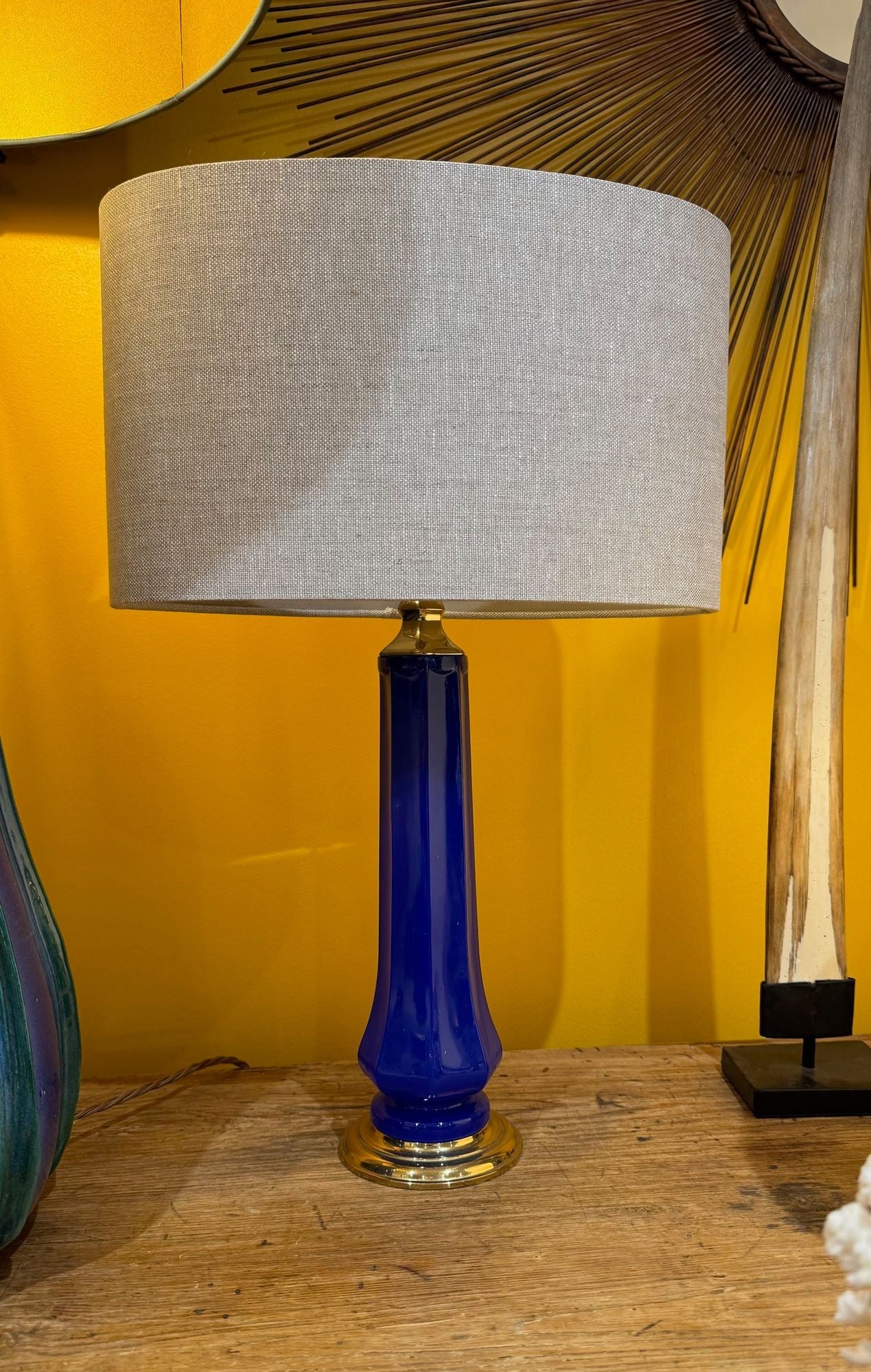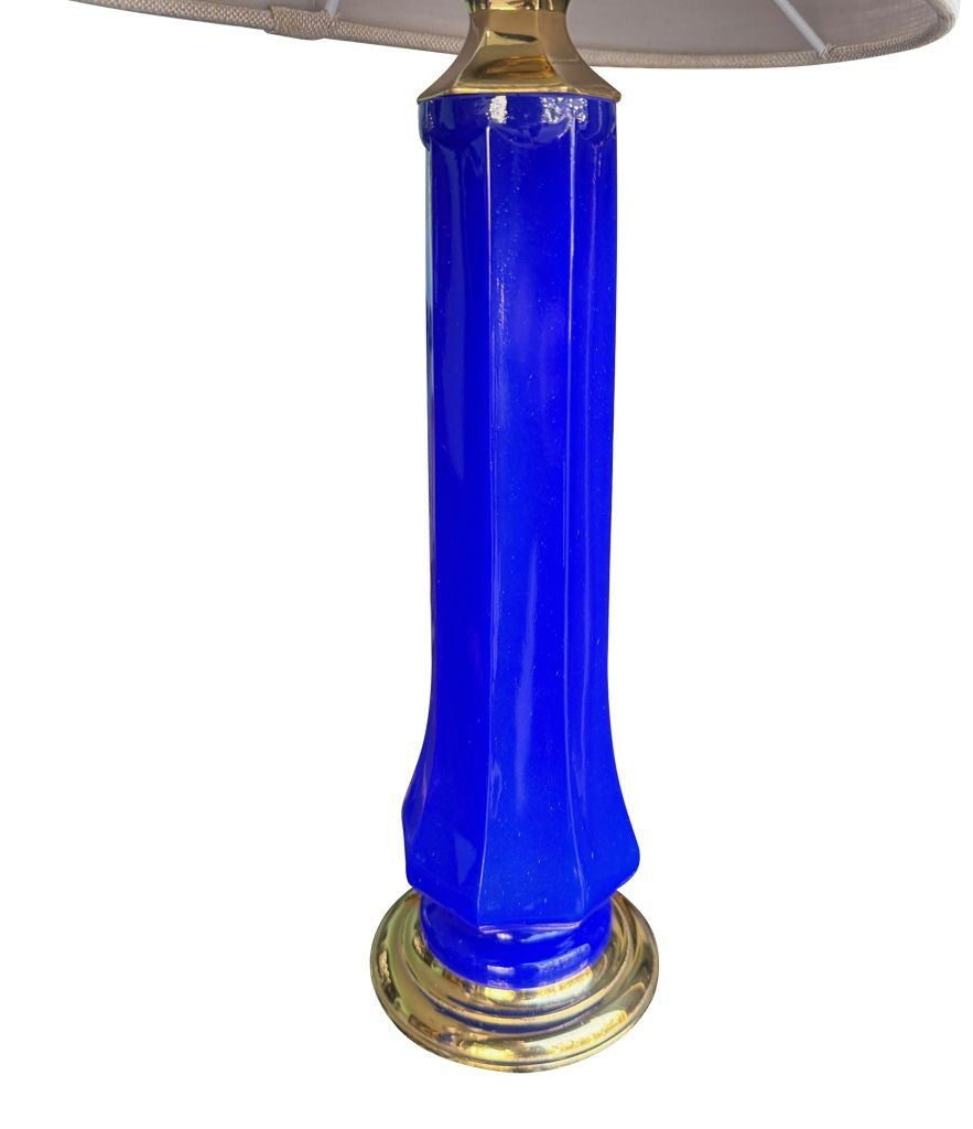 A pair of 1960s cobalt blue opaline Murnao glass lamps by Gino Cenedese