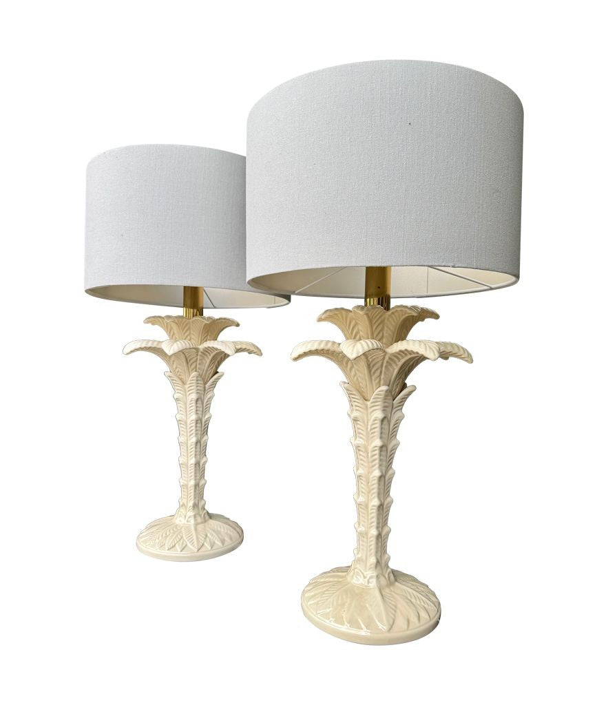 A pair of Italian ceramic 1970s palm tree lamps for lighting company Leola