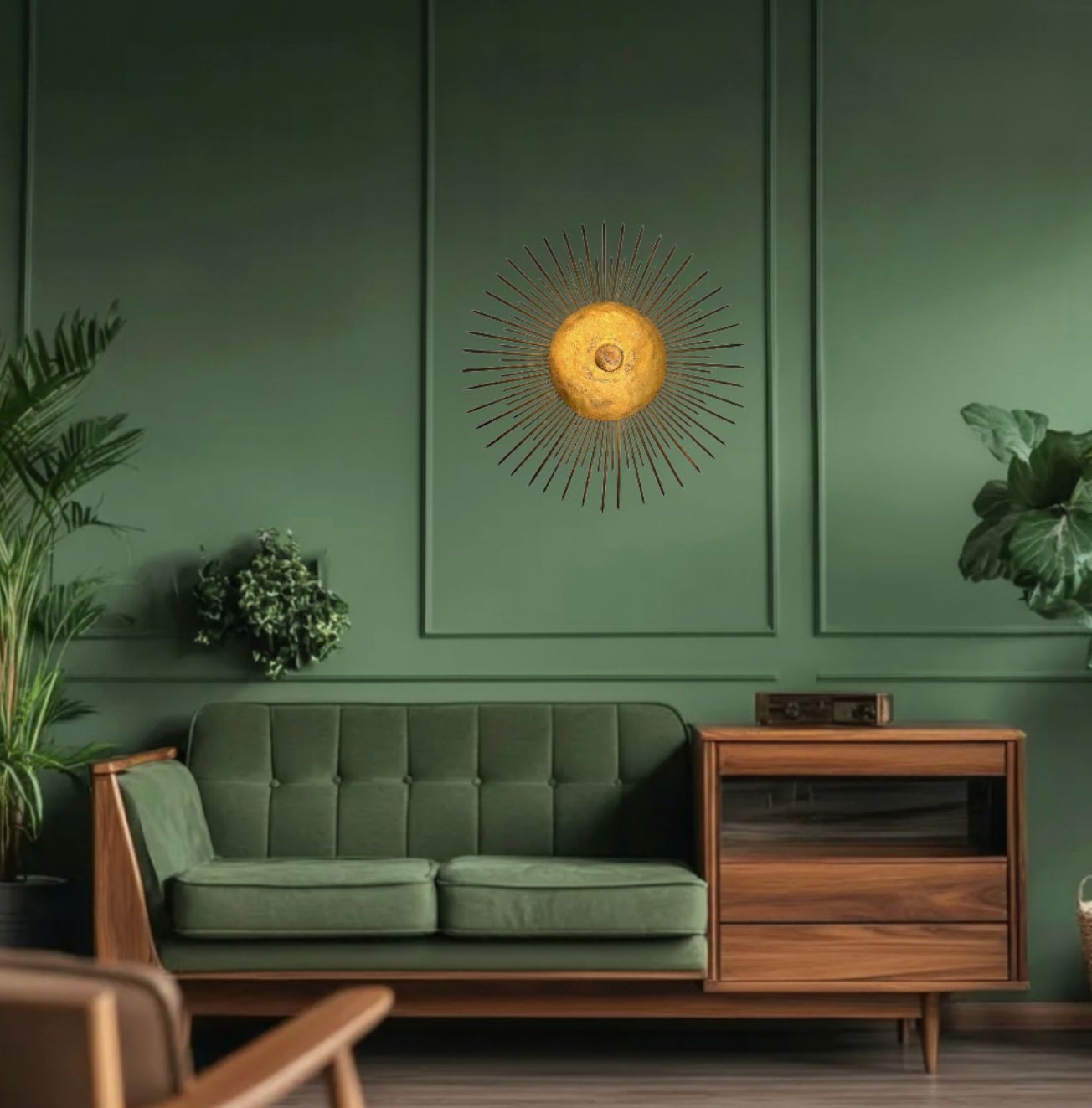 A Spanish 1950s wrought iron sunburst wall / ceiling light. Re wired with two new brass fittings and PAT tested