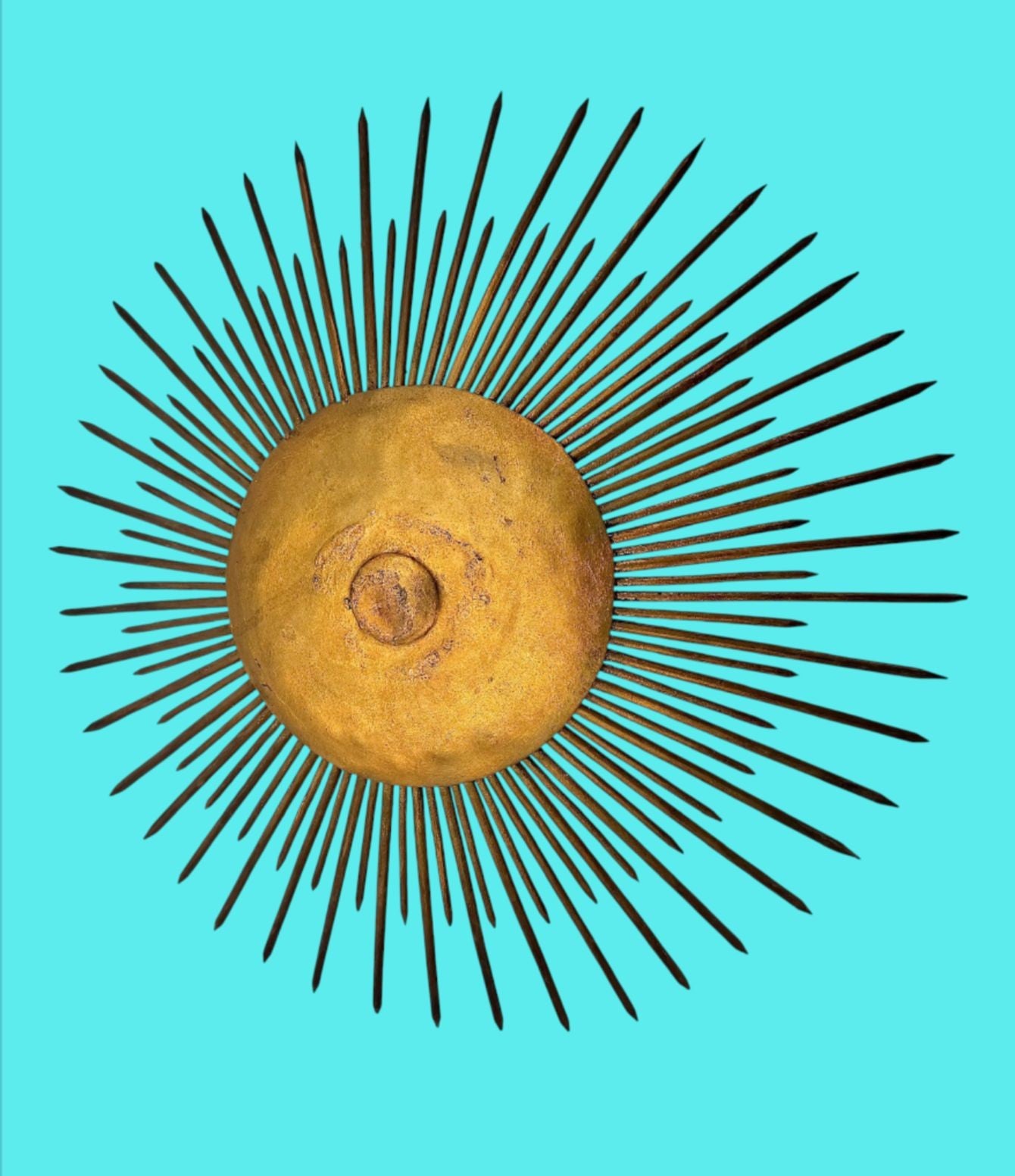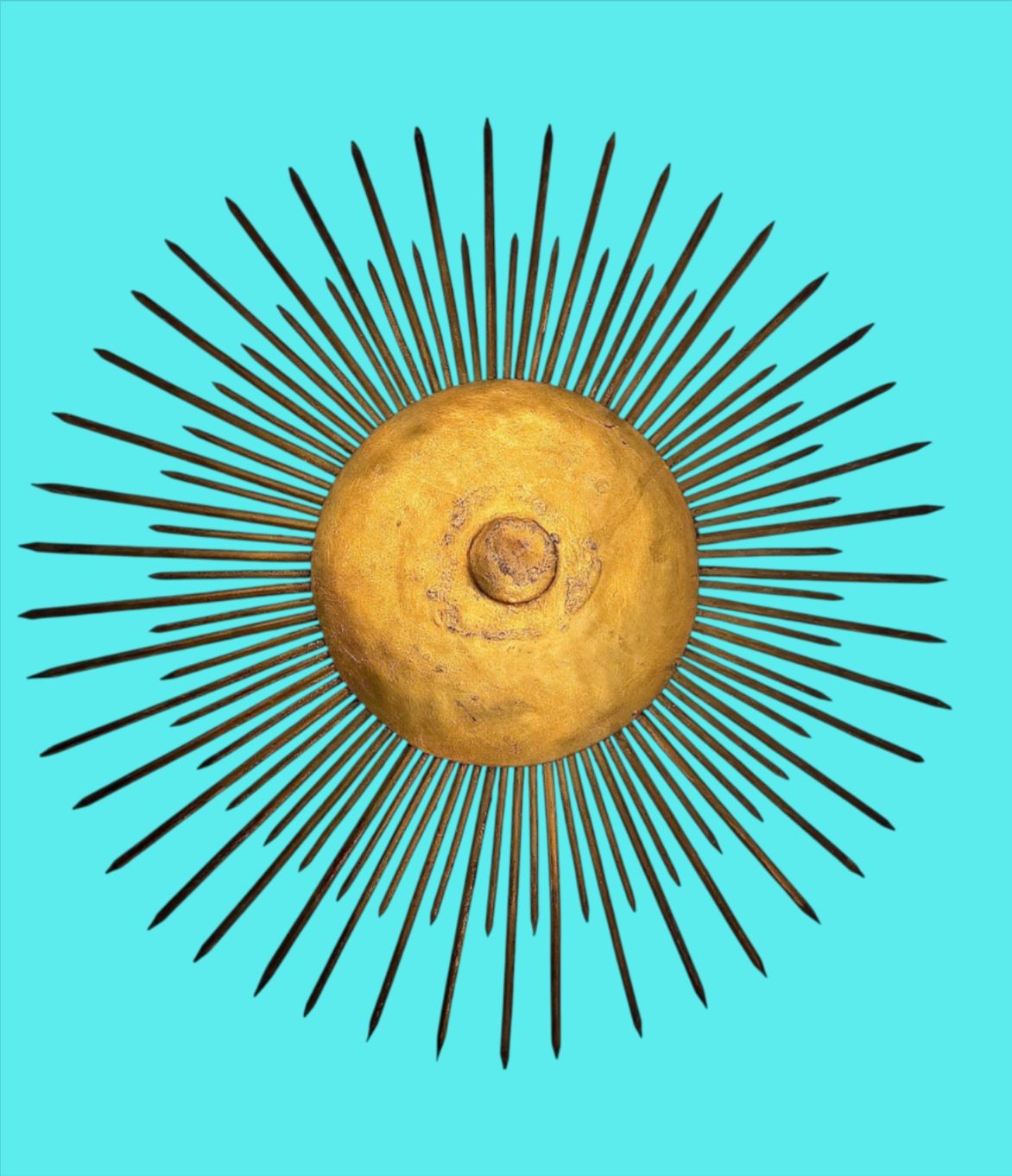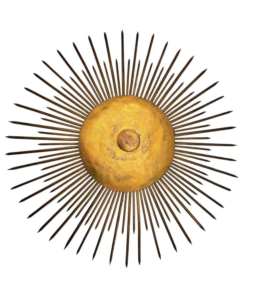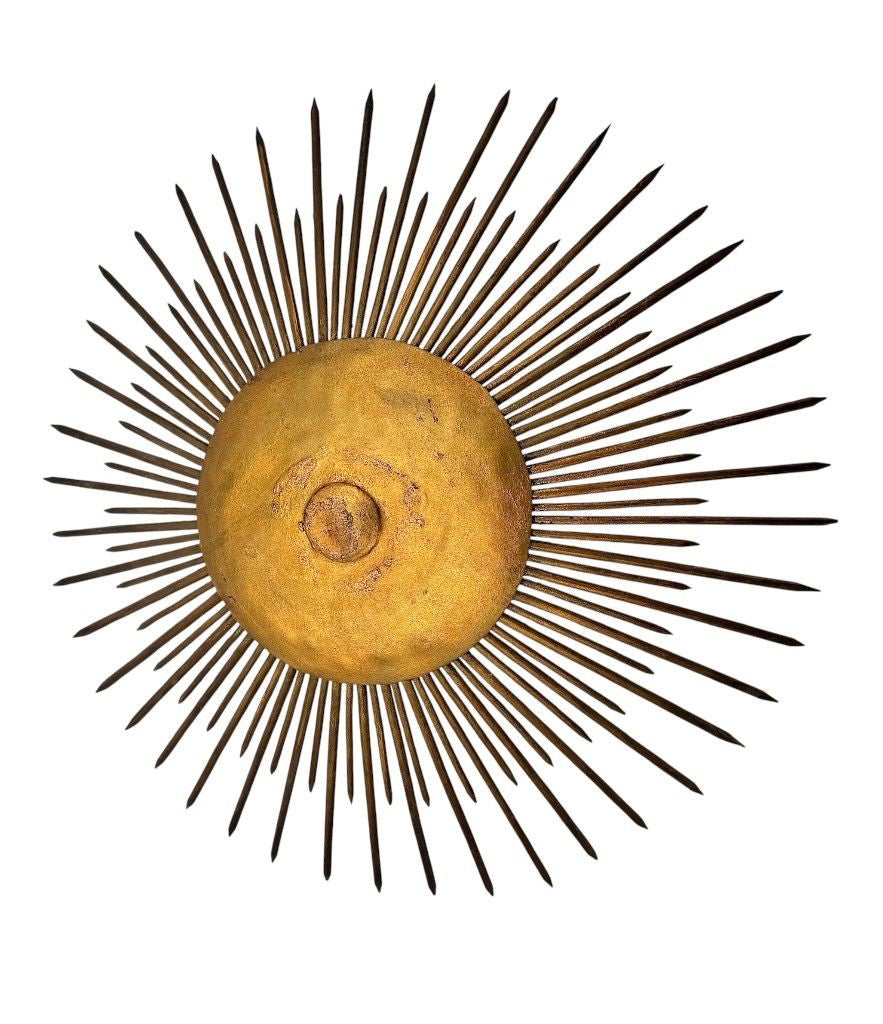 A Spanish 1950s gilt wrought iron sunburst wall / ceiling light