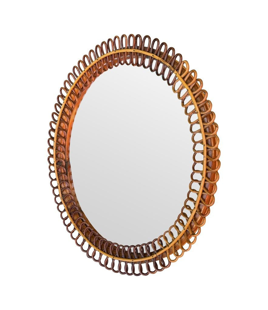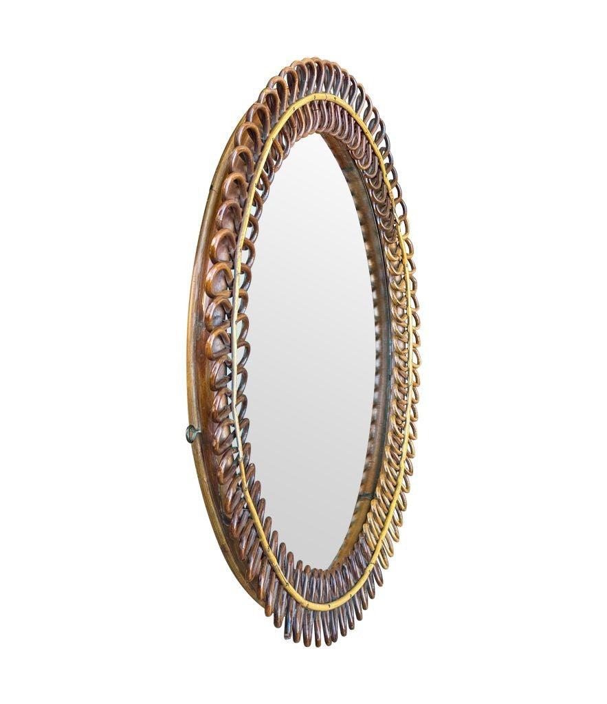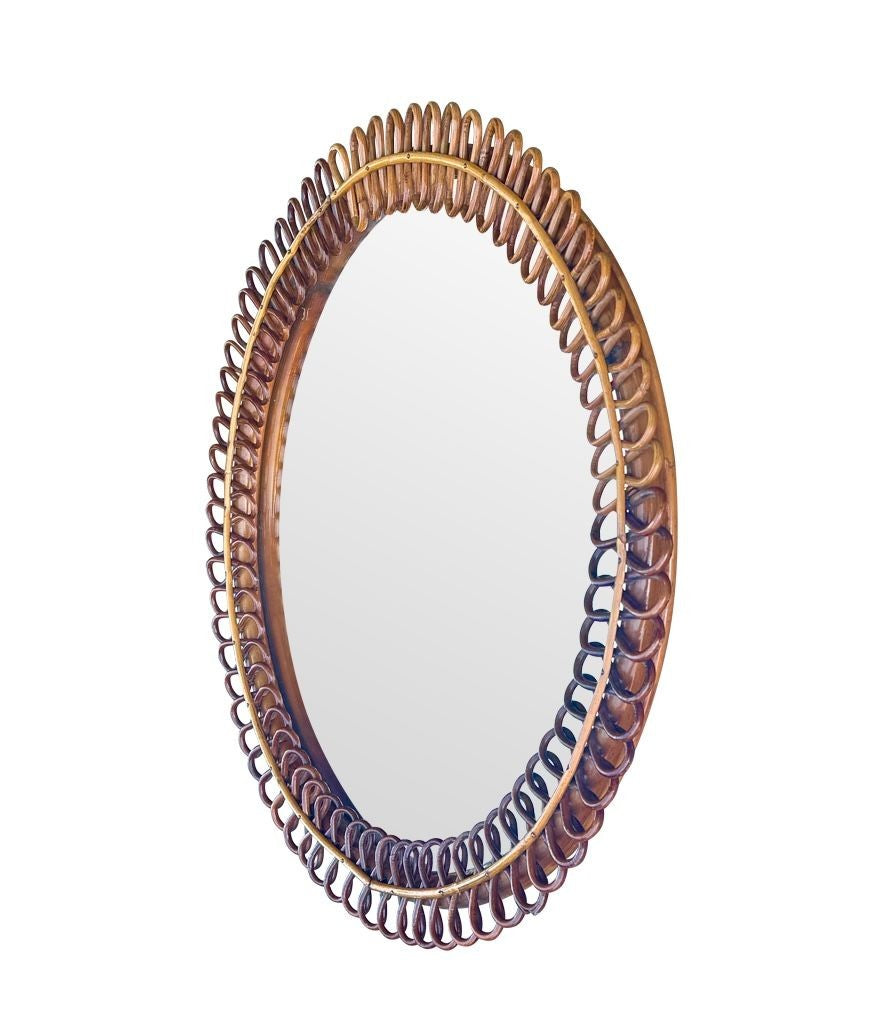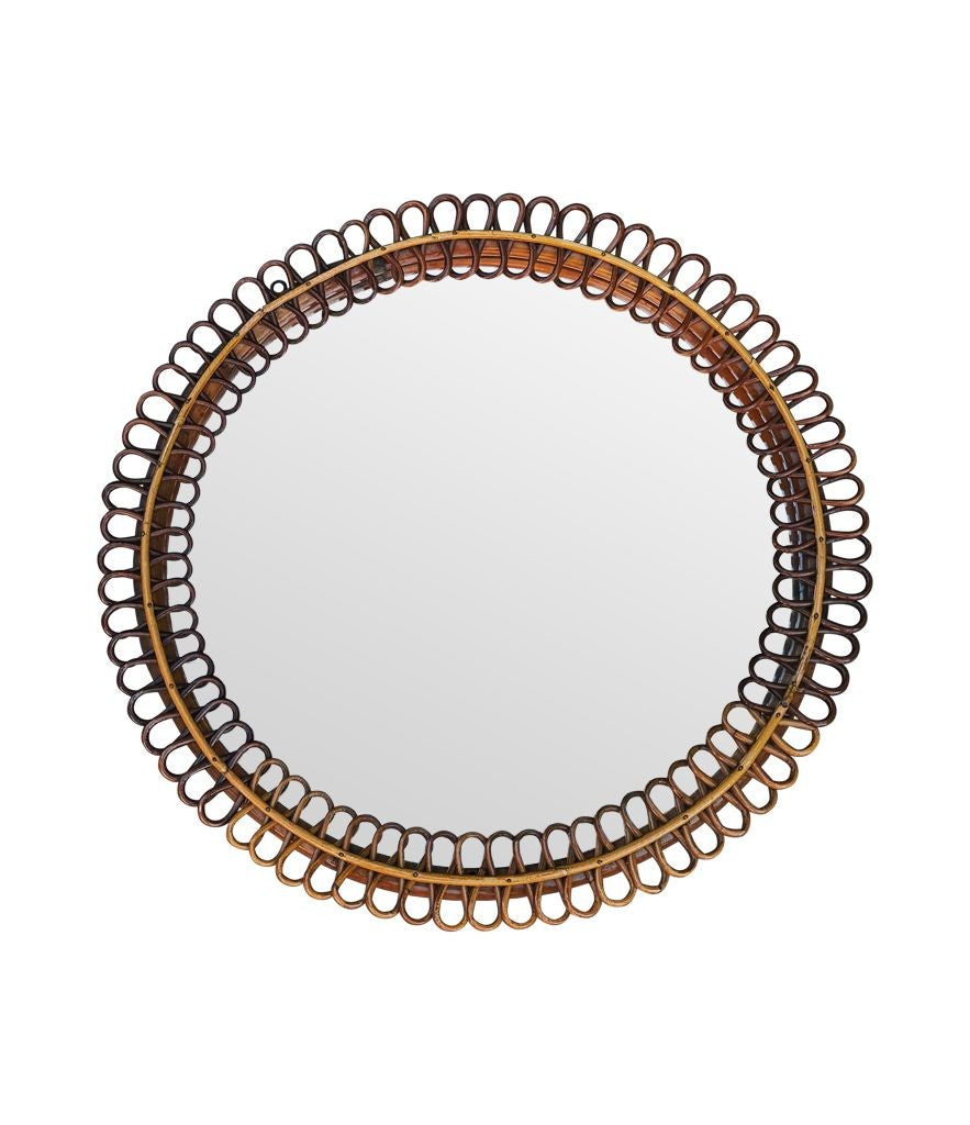 An Italian 1970s circular bamboo mirror by Franco Albini for Bonacina