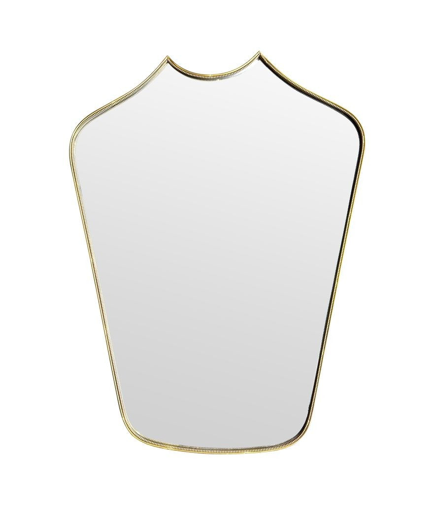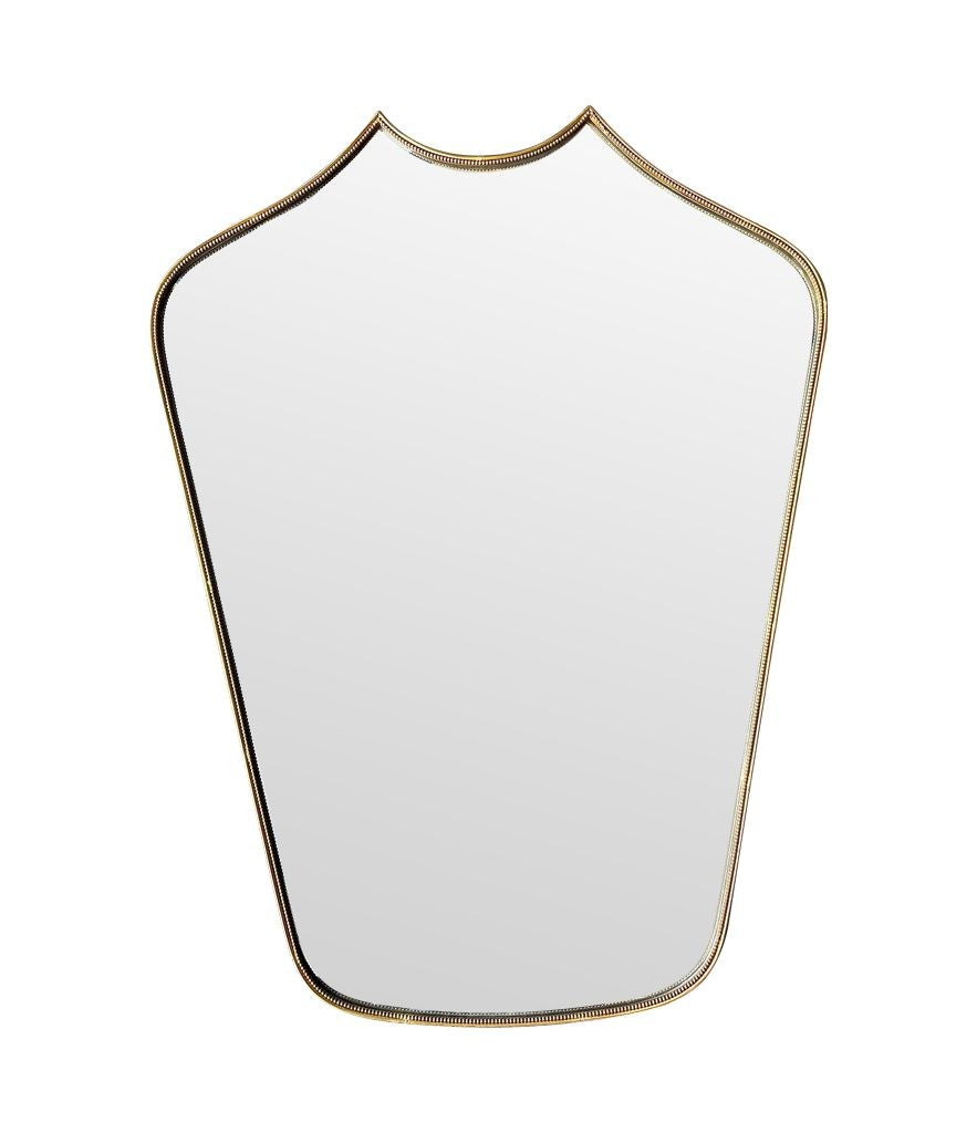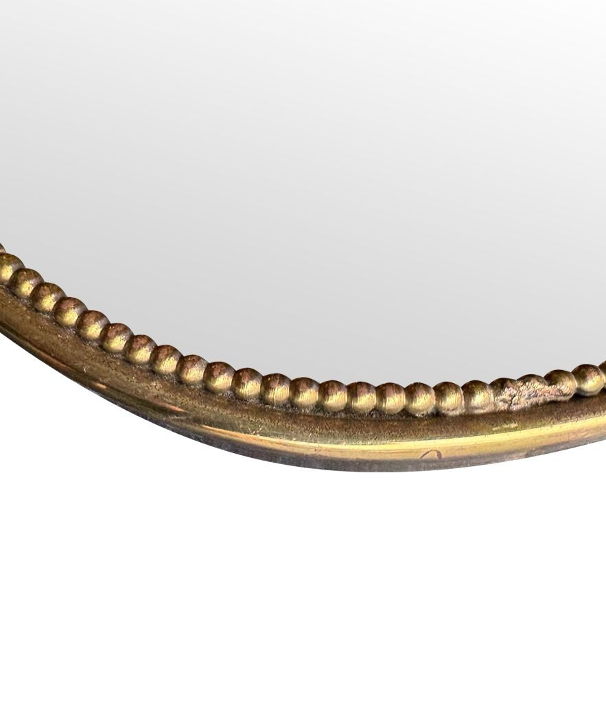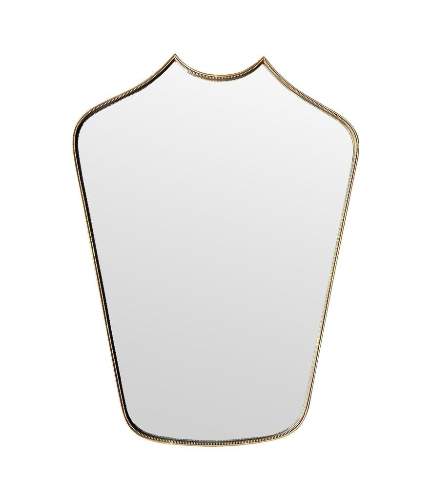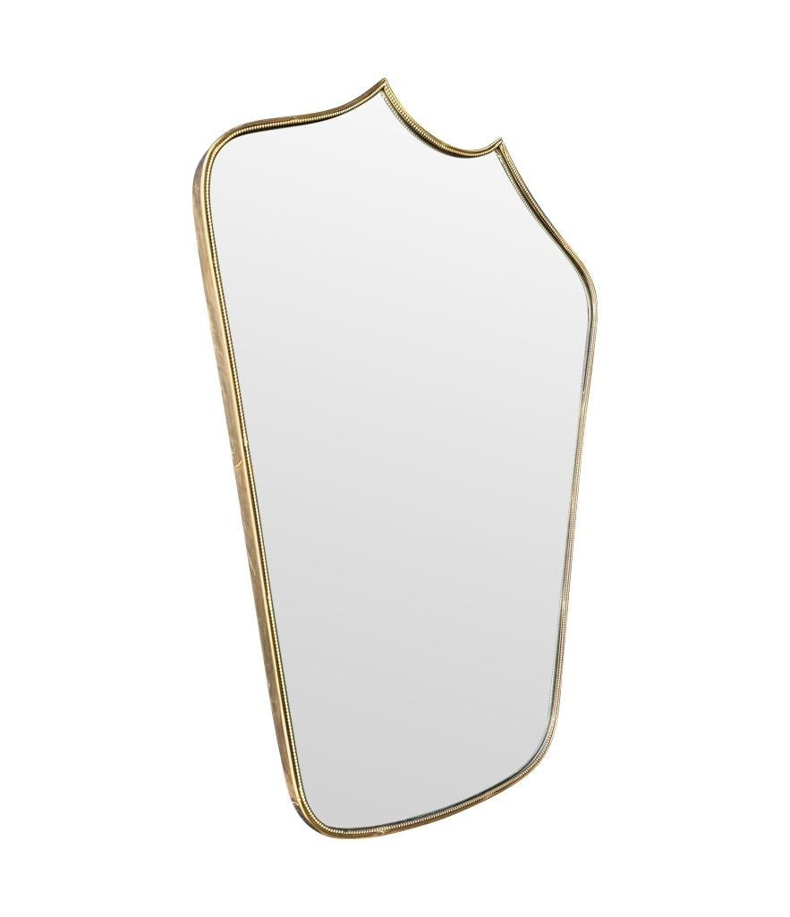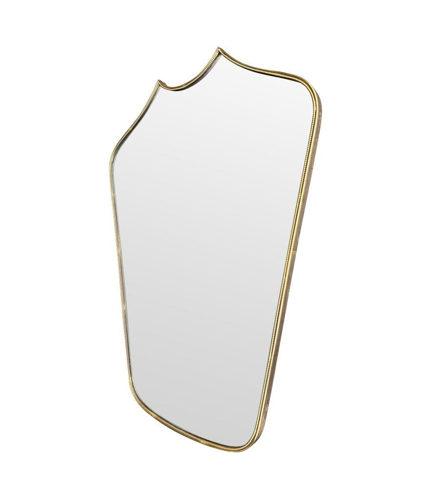 An orignal 1950s Italian shield brass framed mirror, with beaded detailing and solid wood back.
