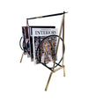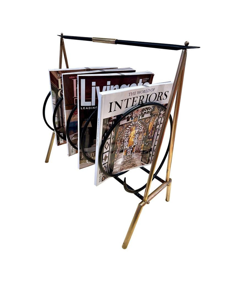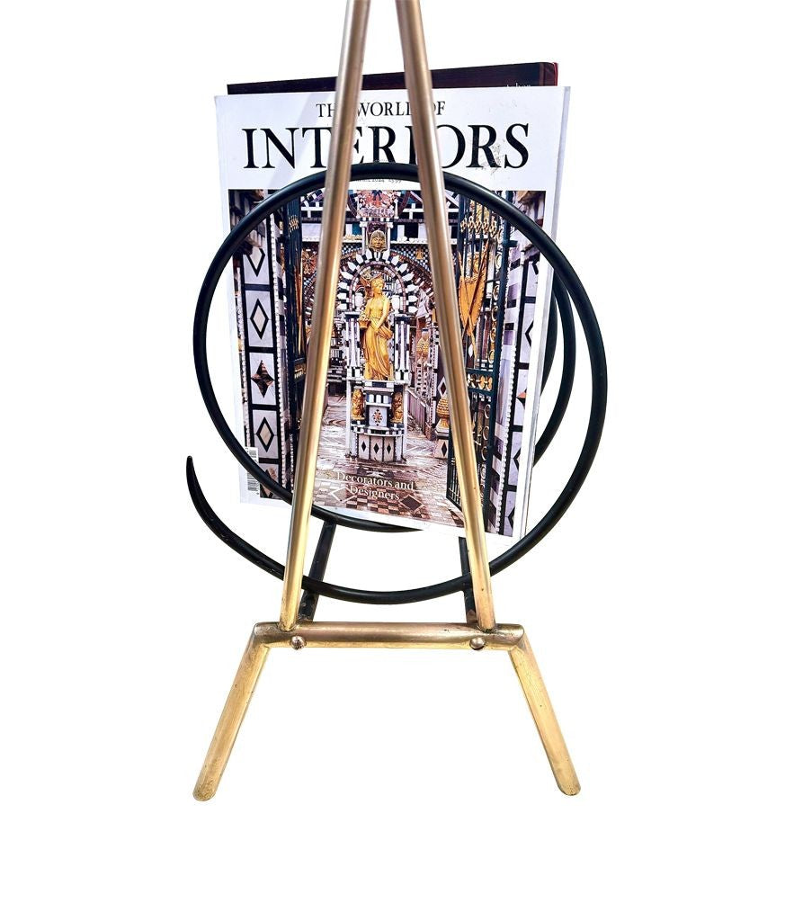 An unusual Italian 1950s mid century brass and black lacquered spiral magazine rack