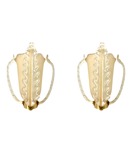 A wonderful pair of 1950s Murano glass and brass wall sconces by Barovier and Toso