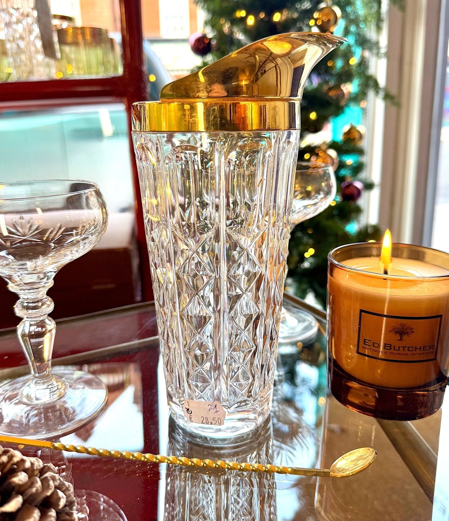 A 1950s Val Saint Lambert crystal and gold plated cocktail jug