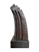 A 1960s Belgian ceramic abstract sculpture with bronze textured style finish mounted on black marble base, signed on the base "j h '64".