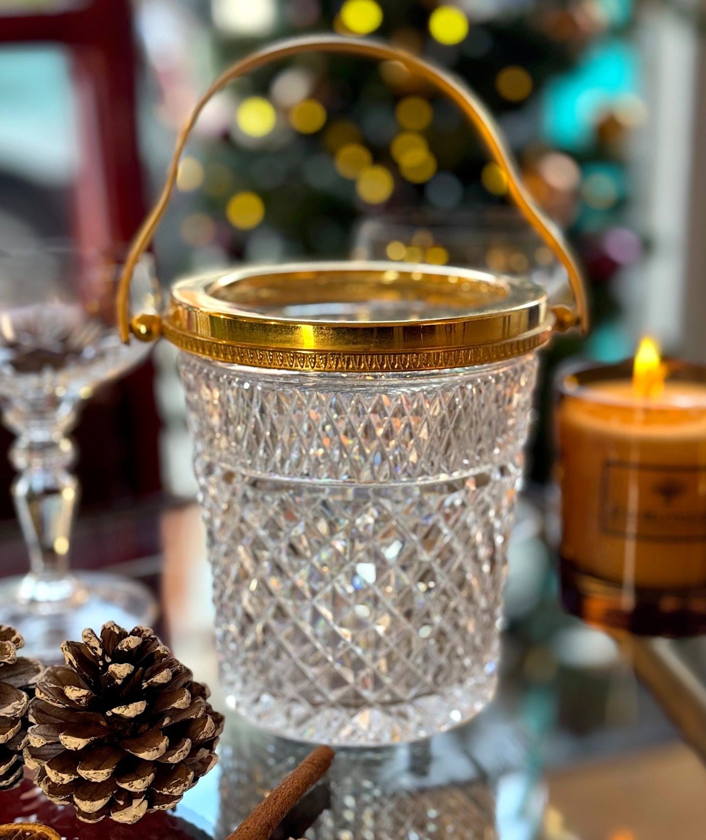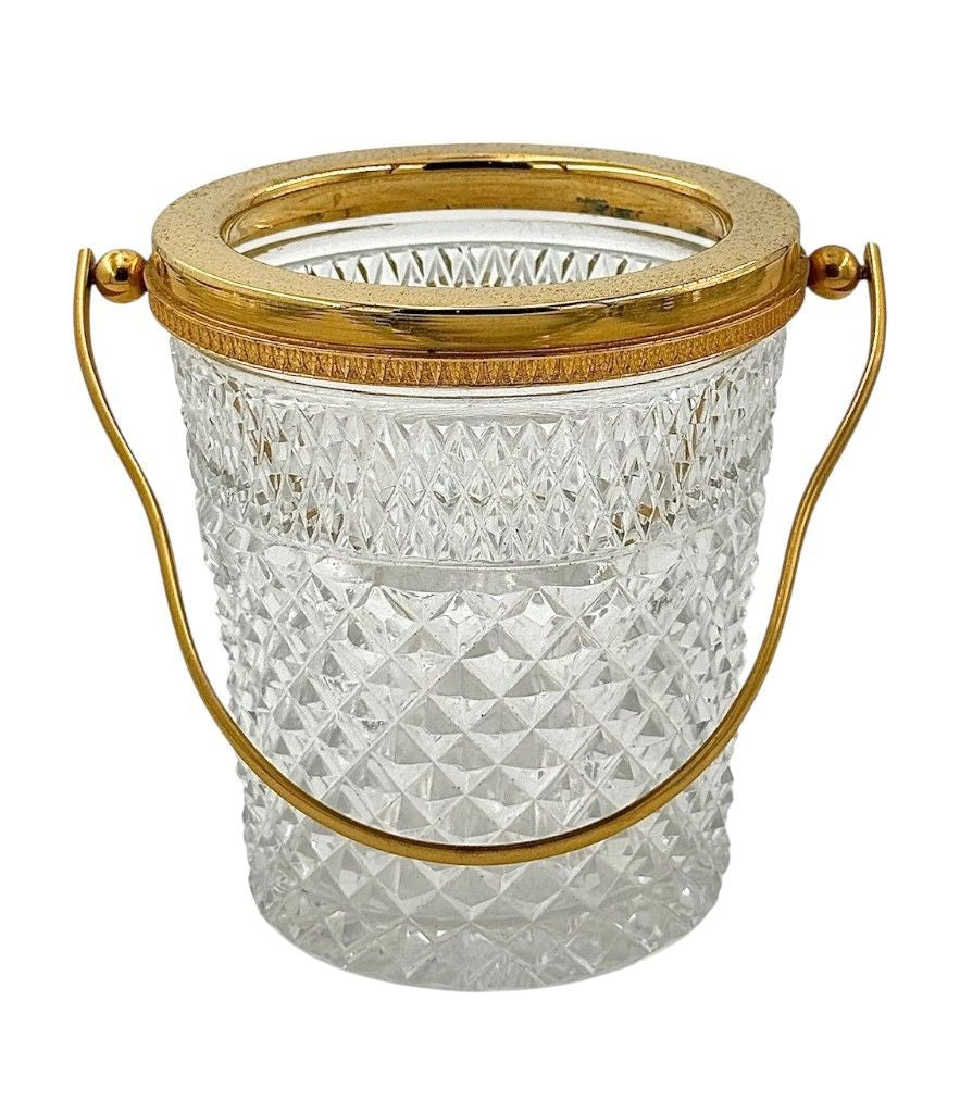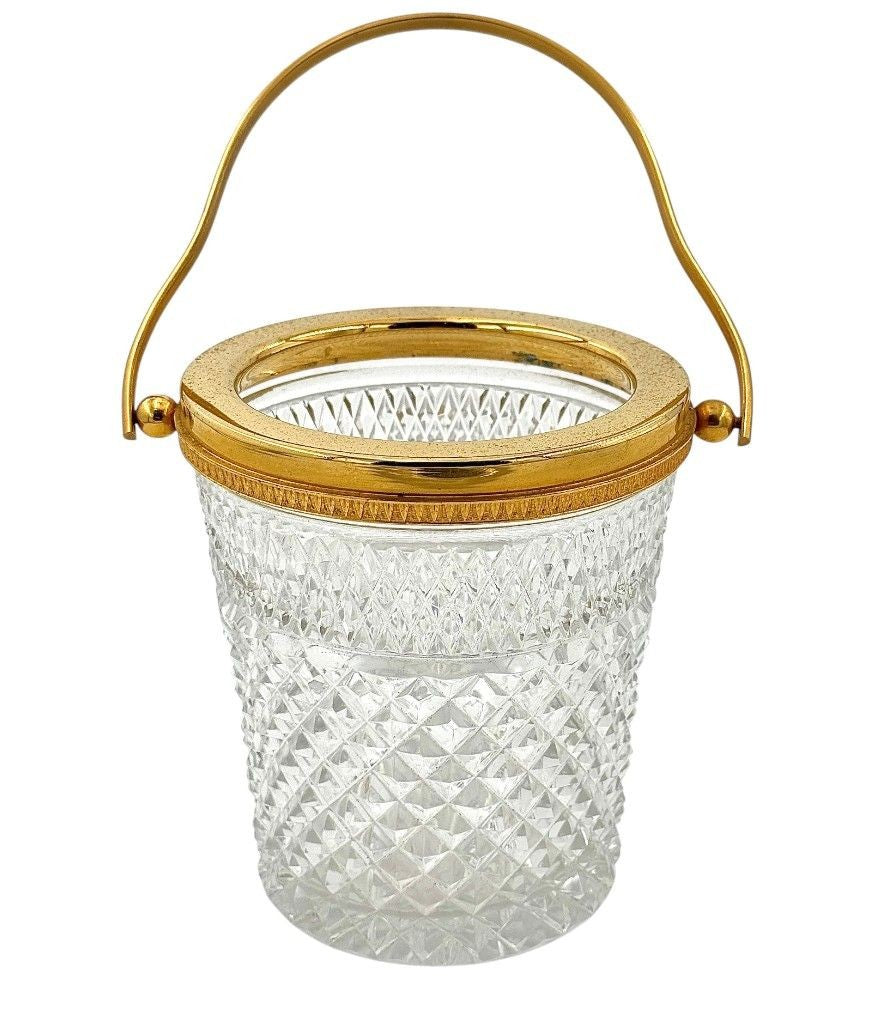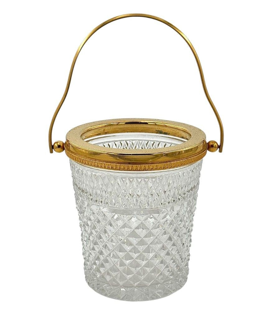 A 1960s Val Saint lambert cut crystal and gilt metal ice bucket with handle