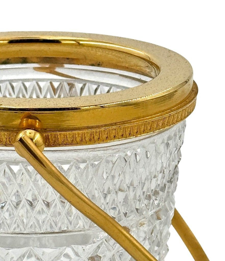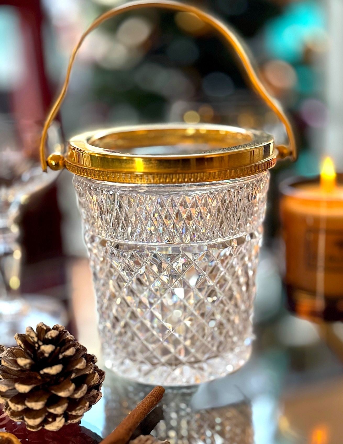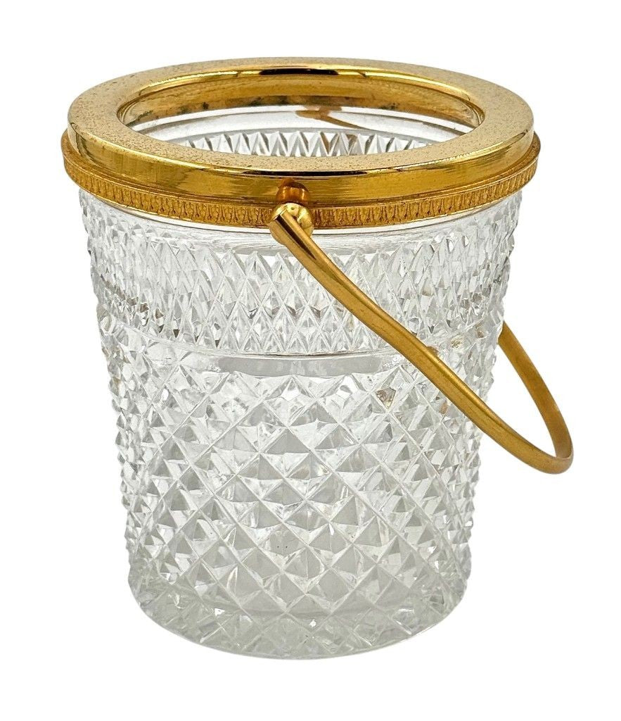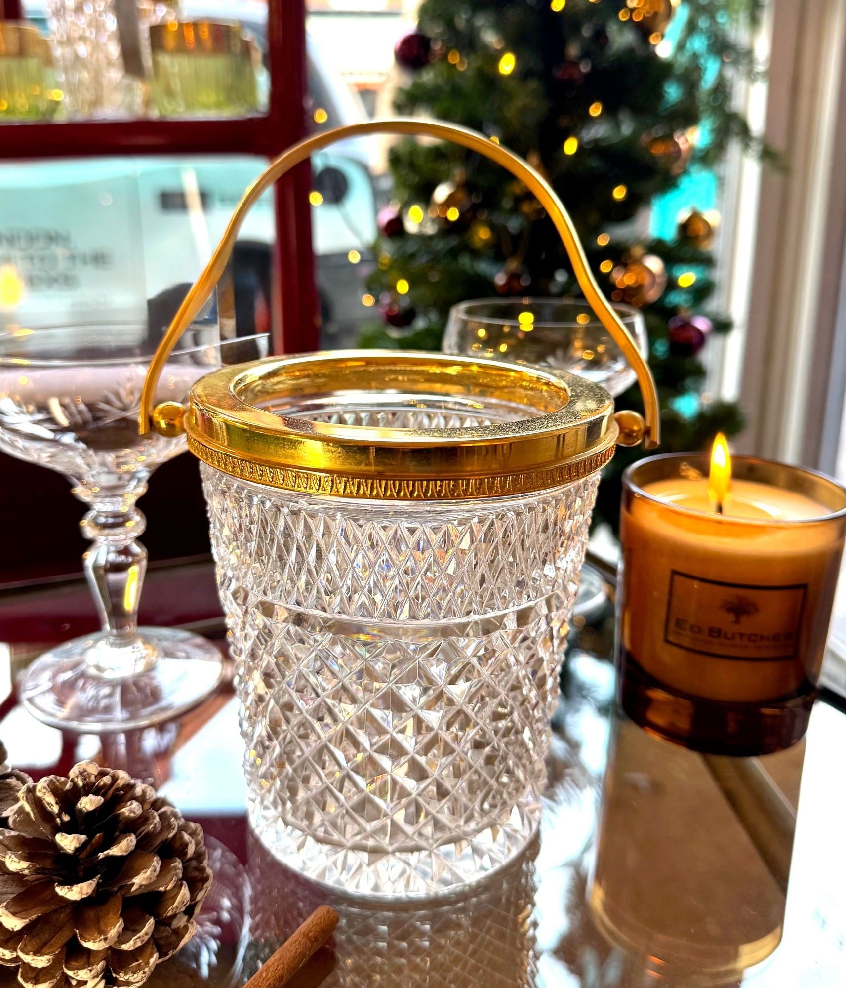 A 1960s Val Saint lambert cut crystal and gilt metal ice bucket with handle