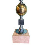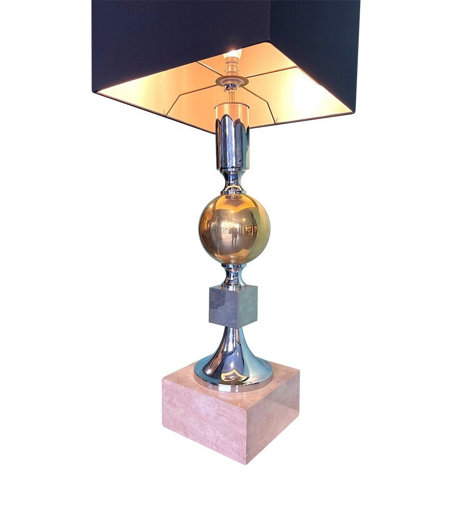 A large French 1970s brass, chrome and marble lamp by Maison Barbier