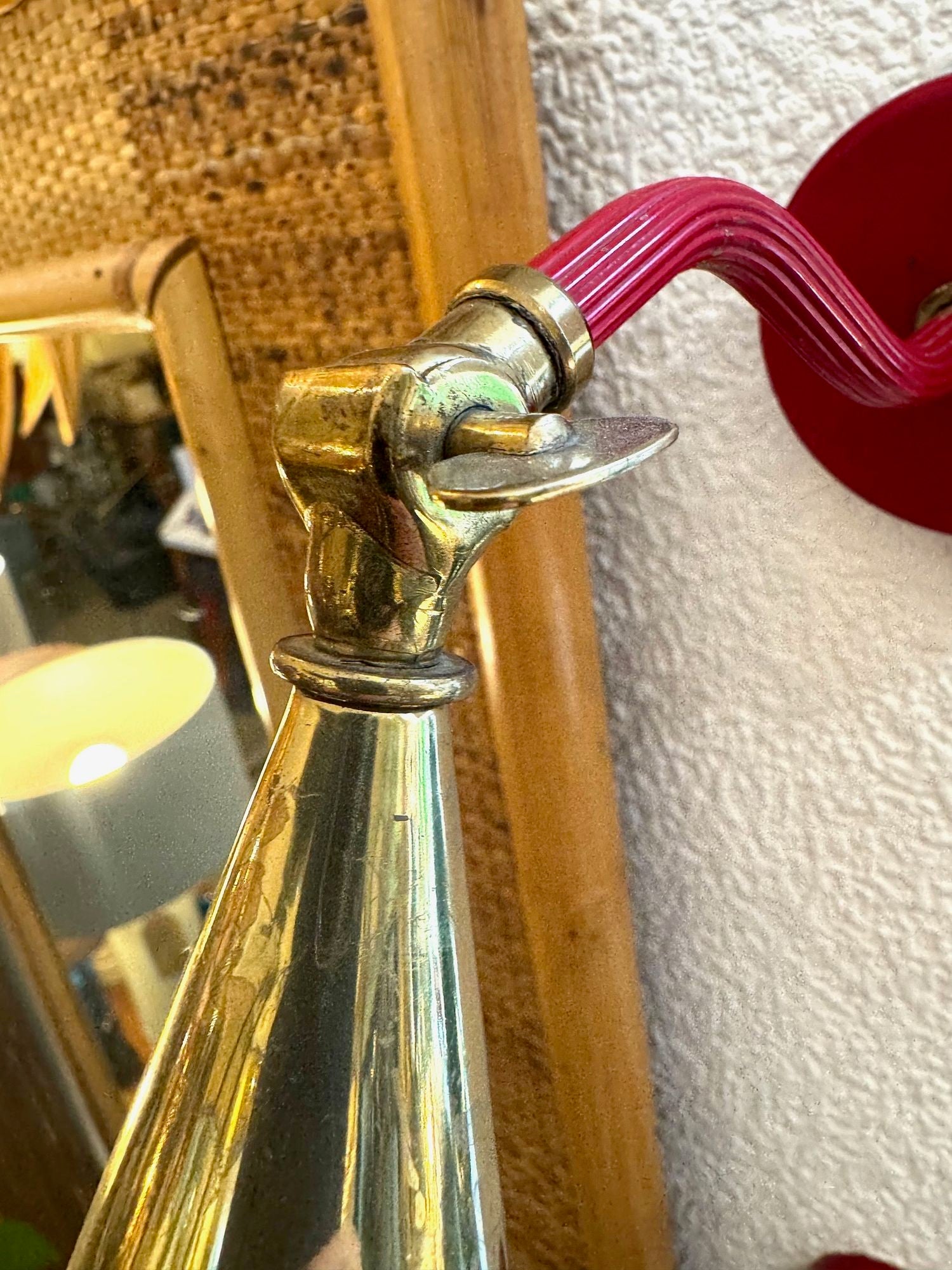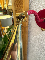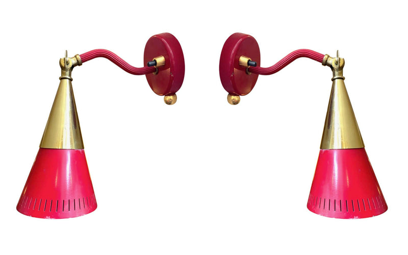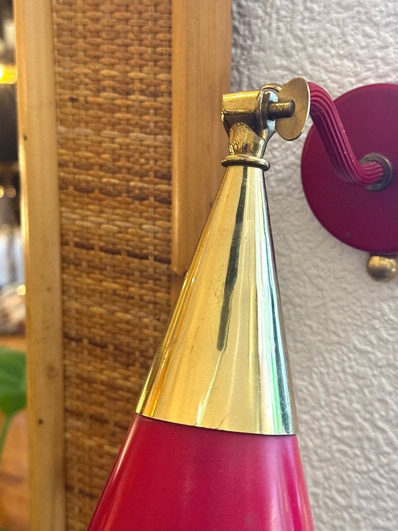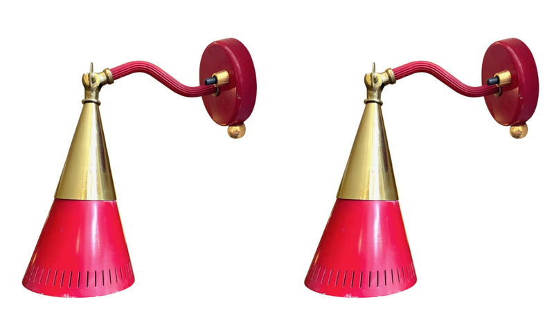 A pair of Holm Sorensen 1950s red enamelled metal and brass adjustable wall lights