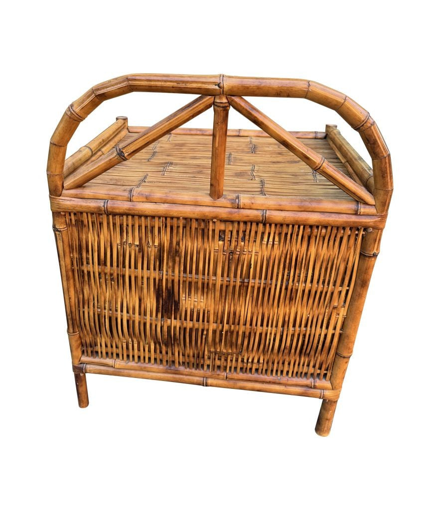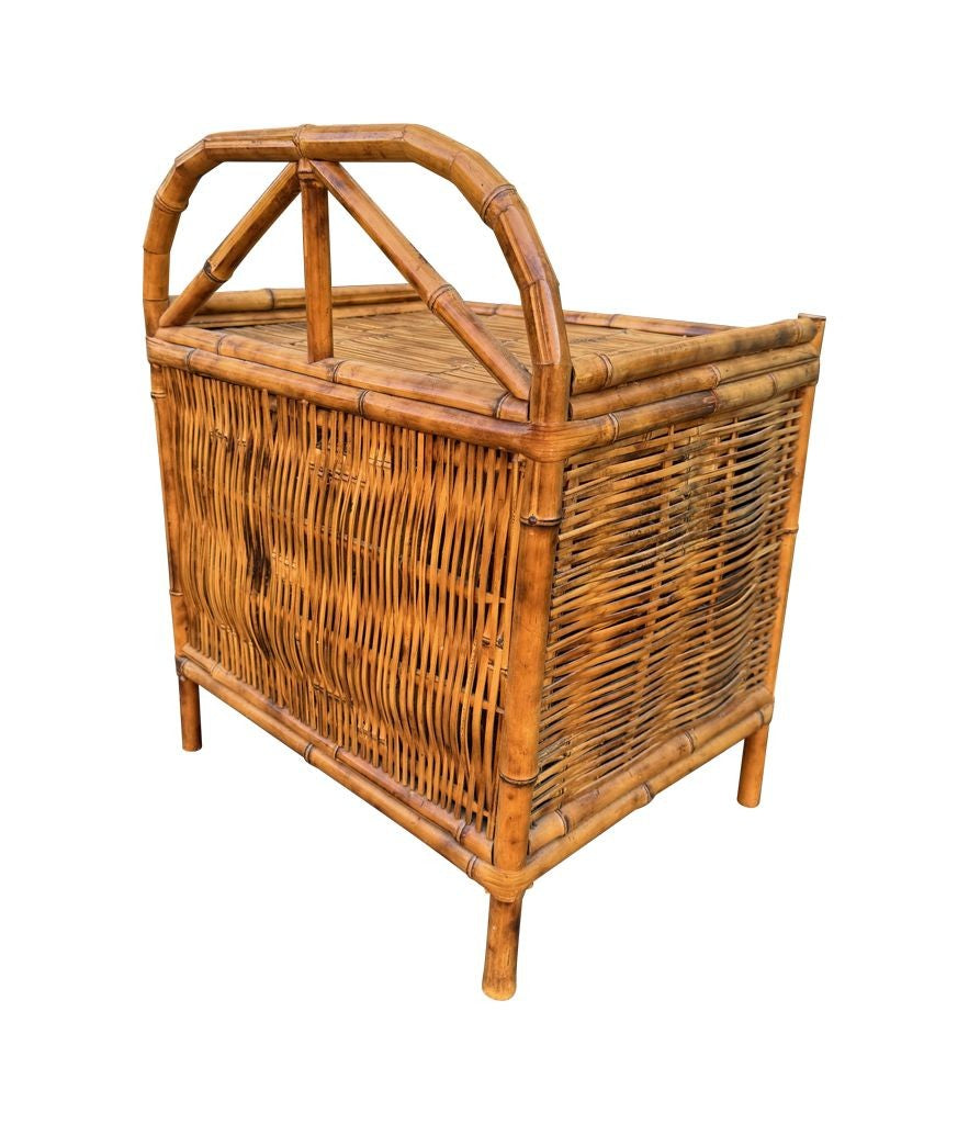 A pair of Italian 1970s Vivai Del Sud style tortoiseshell bamboo bedside tables with two doors