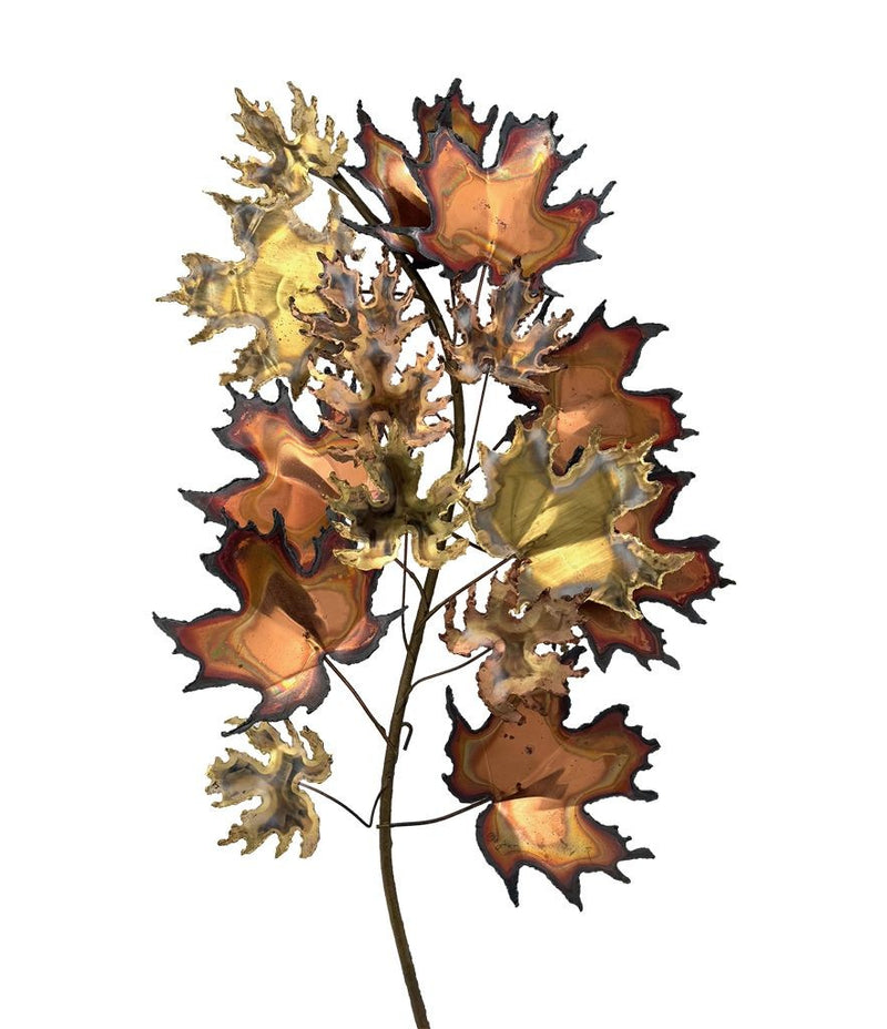 A pair of large 1970s Curtis Jere torch cut brass and bronze maple leaf sculptures