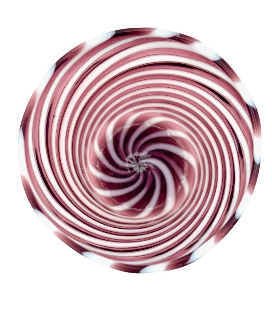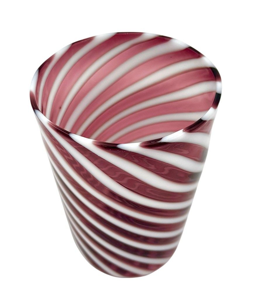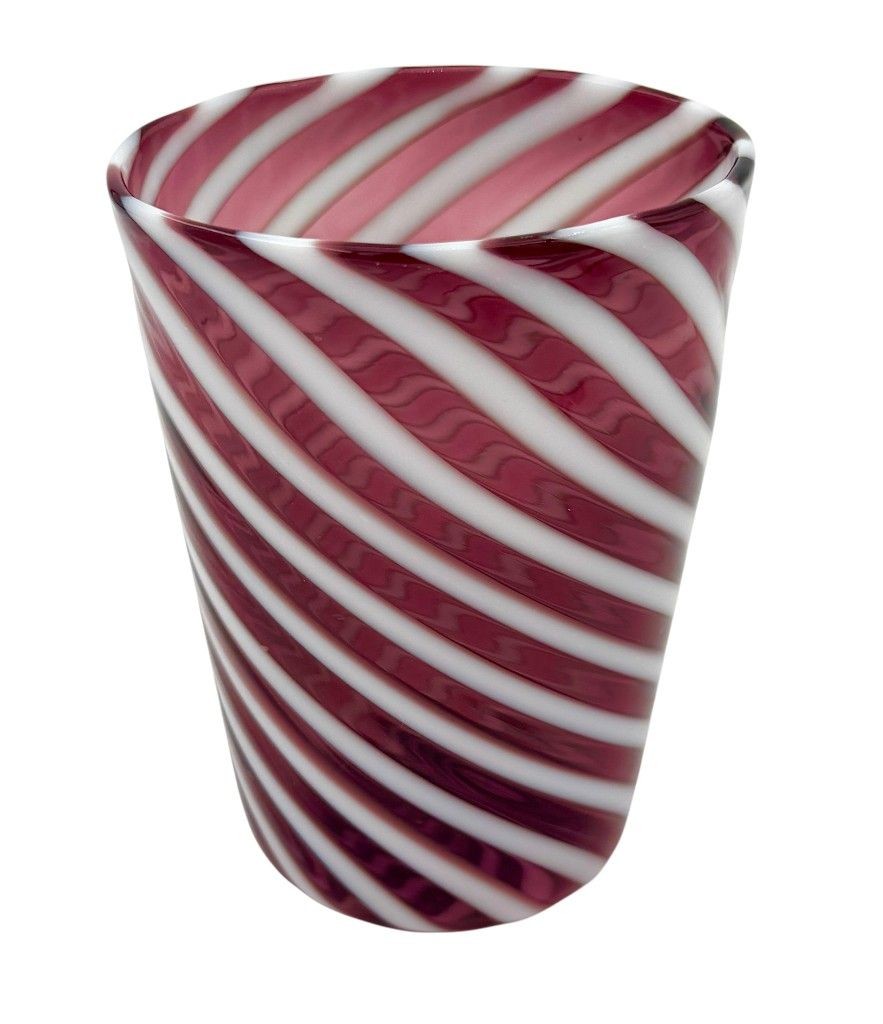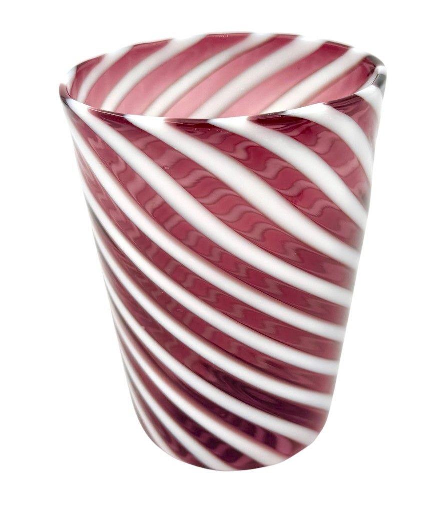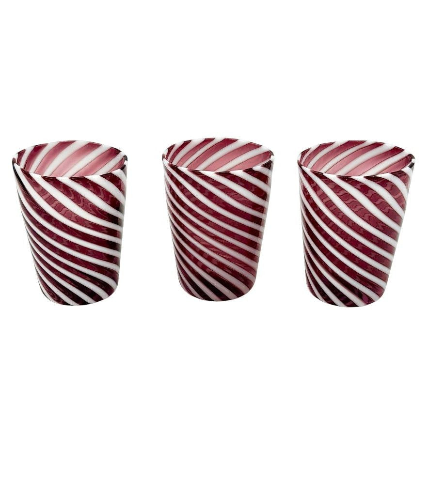 A set of six wonderful Italian handblown Murano glass tumblers with purple and white swirling stripes