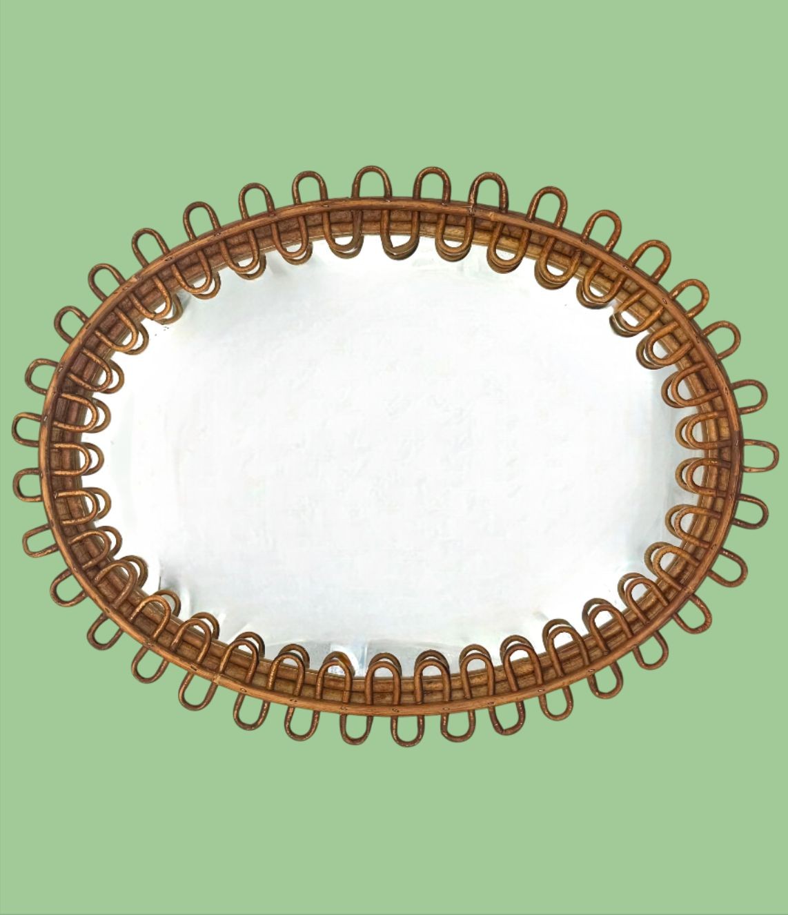 An Italian 1960s oval bamboo framed mirror by Franco Albini