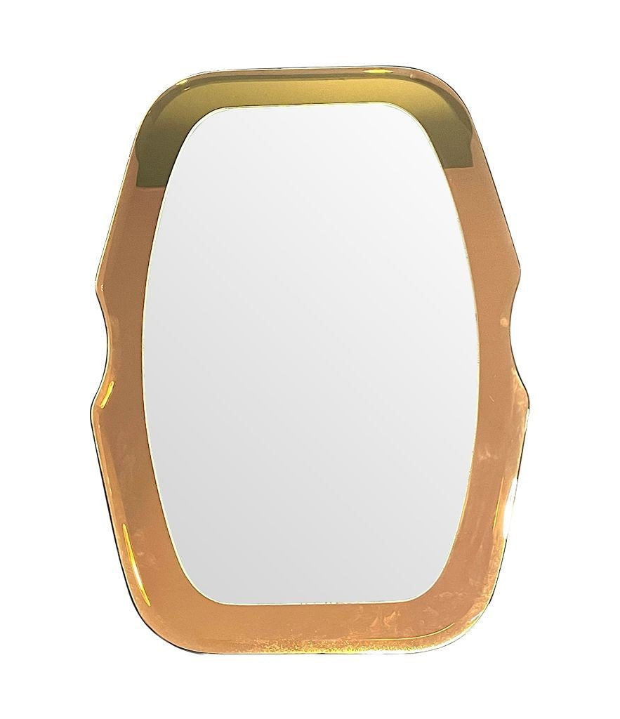 An Italian 1960s shaped Cristal Arte mirror with pink rose mirrored surround frame.