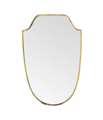 An original 1950s Italian shield mirror with solid brass frame and solid wood back